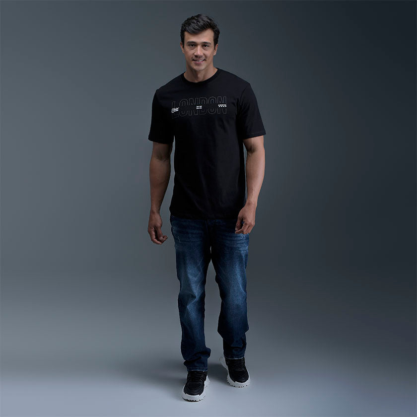 Camiseta para hombre presenta estampados ROOTT+CO, luce marquilla en la manga.