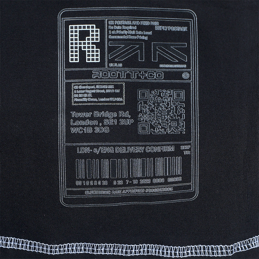 Camiseta para hombre. Presenta gráficos ROOTT+CO en la parte delantera, diseño en mangas y marquillas de la marca ROOTT+CO.