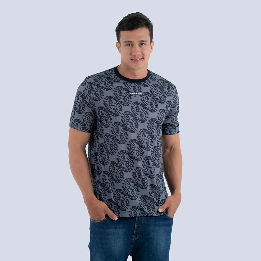 Camiseta para hombre. Presenta gráficos ROOTT+CO estampados en toda la prenda, luce sello de calidad.