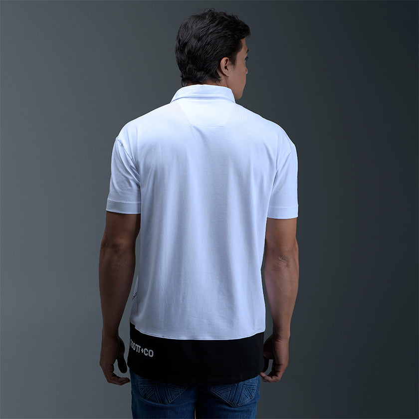 Este polo estampado presenta bandera ROOTT+CO en el pecho. Los puños y el cuello en punto plano le dan un toque elegante.