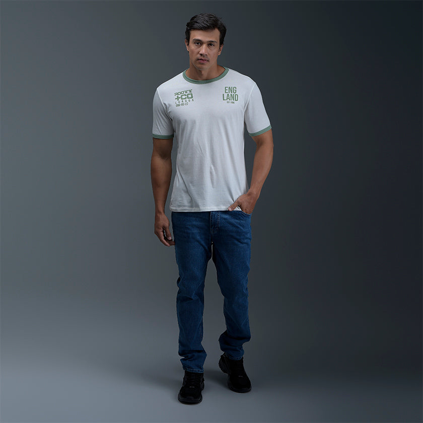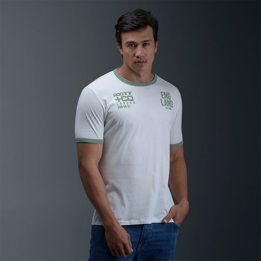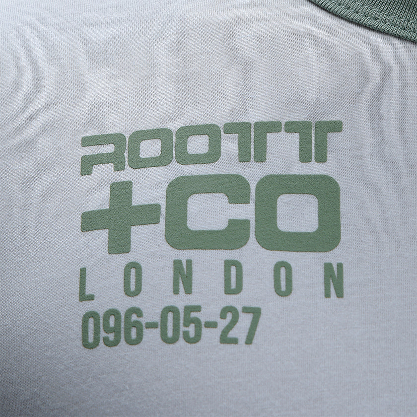 Camiseta para hombre presenta estampados ROOTT+CO, luce marquilla en la manga.