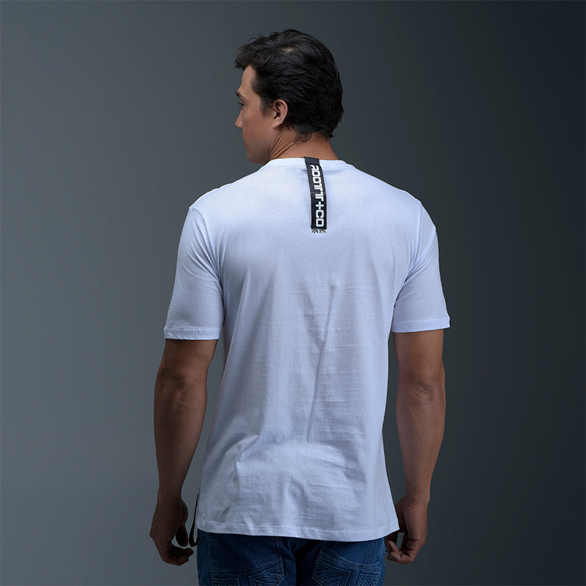 Camiseta para hombre presenta estampados ROOTT+CO, luce marquilla en la manga.
