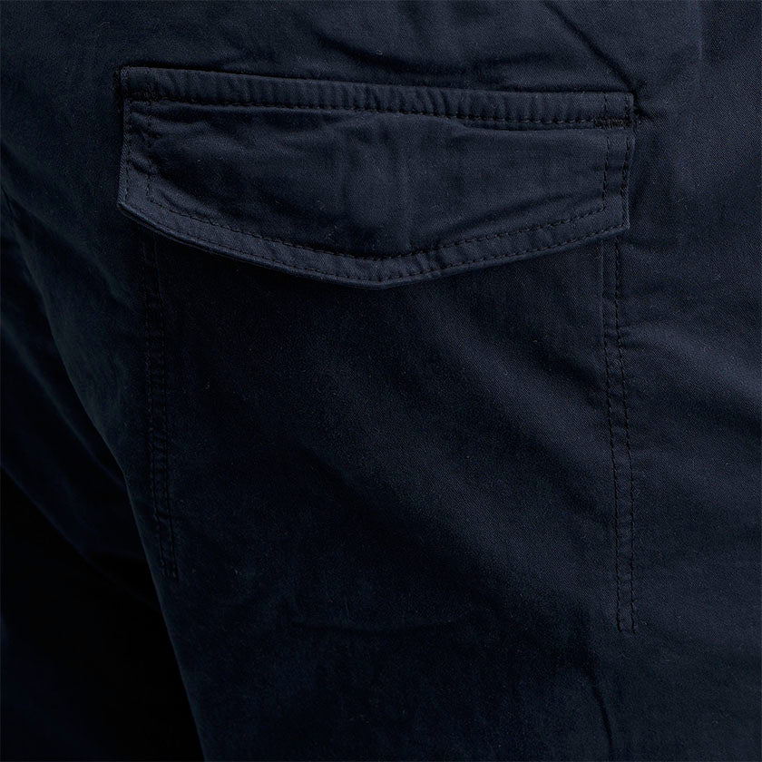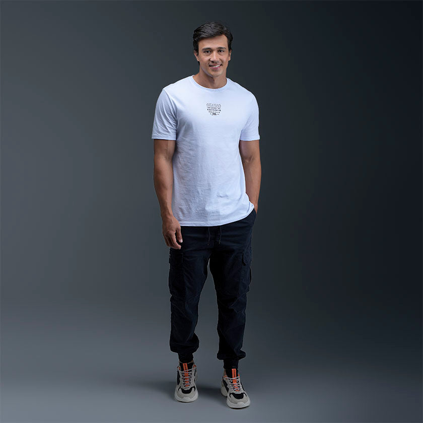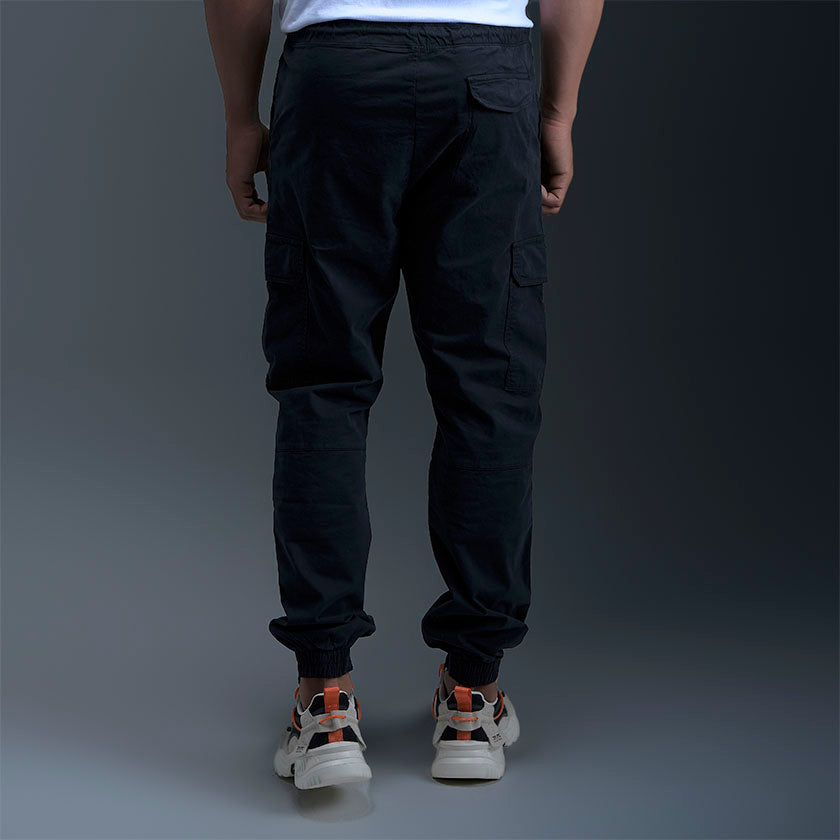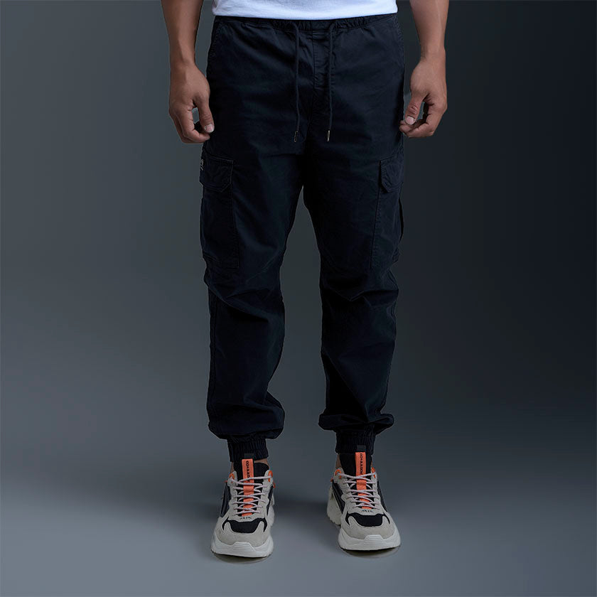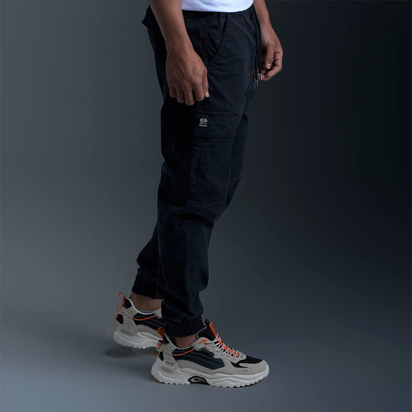 Pantalón cargo para hombre, una prenda clásica llevada a un estilo moderno. Presenta cortes, repises y bolsillos en los muslos que generan contraste con la prenda, además de lucir marquilla con código en uno de sus bolsillos. Cuenta con botas con ajuste elástico en los tobillos y cintura rematada con cordón regulable..