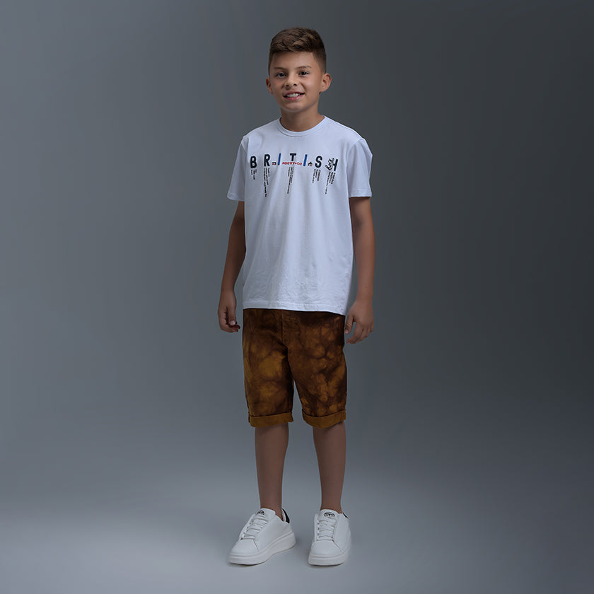Bermuda denim para niño presenta marquilla ROOTT+CO, cómoda ligeramente arriba de la rodilla.