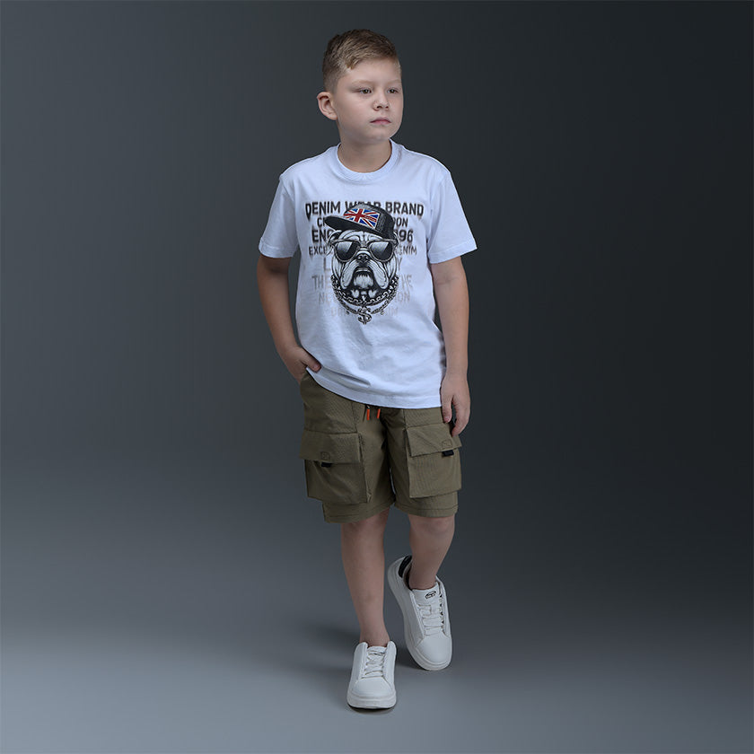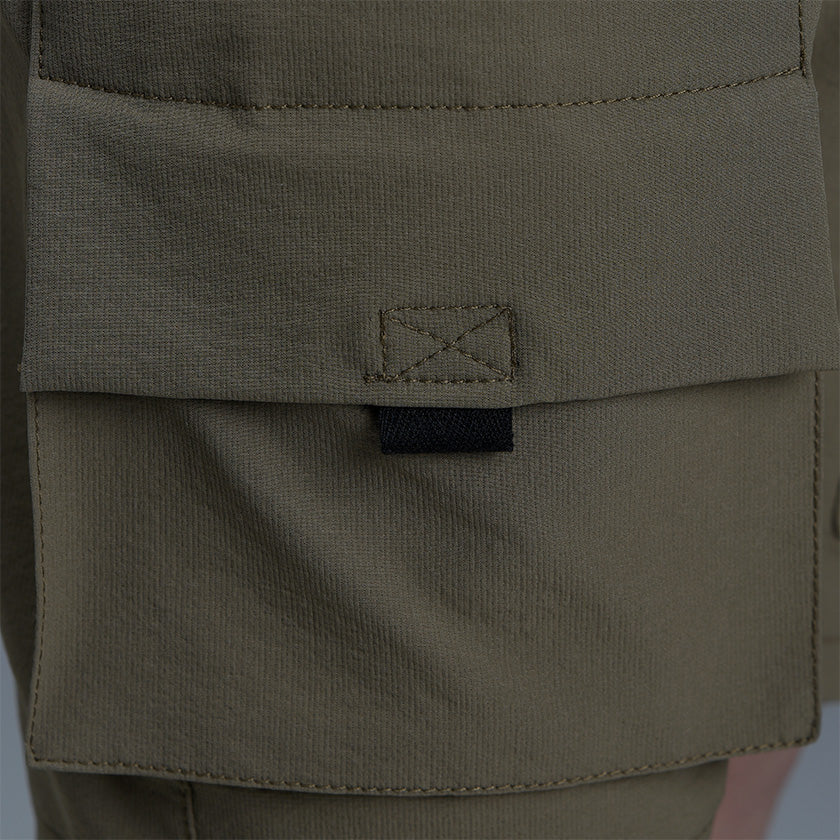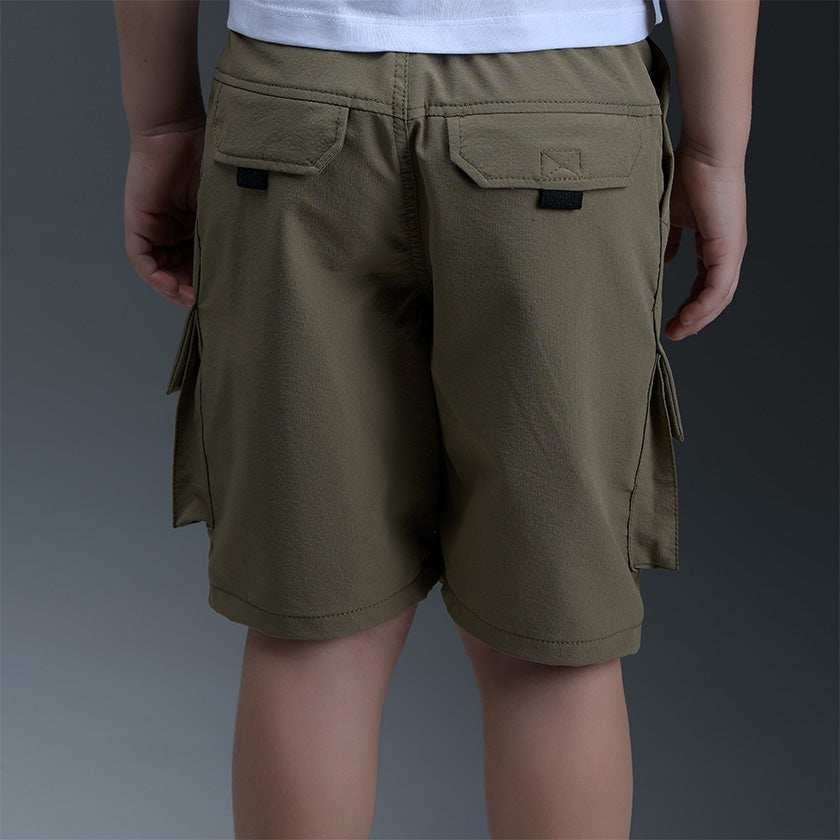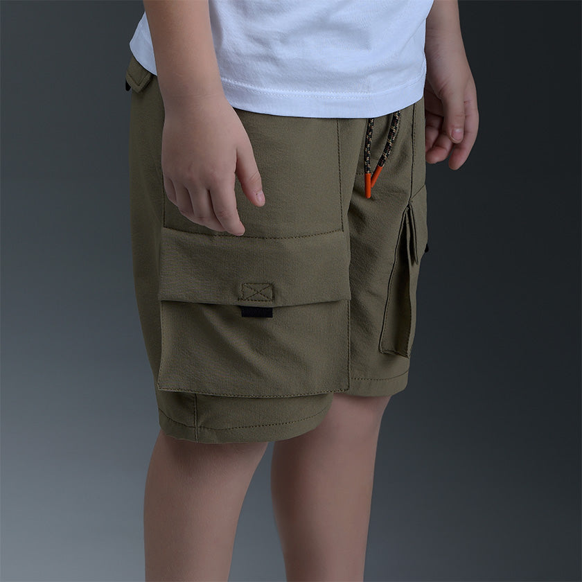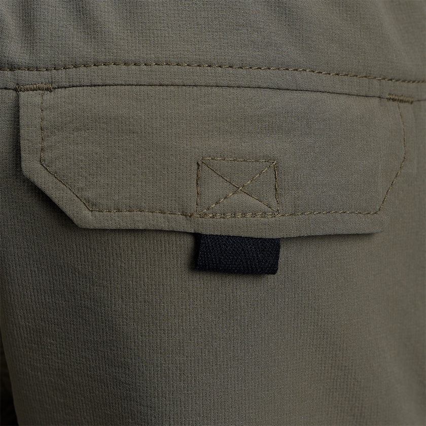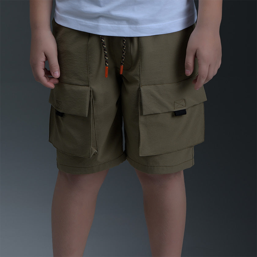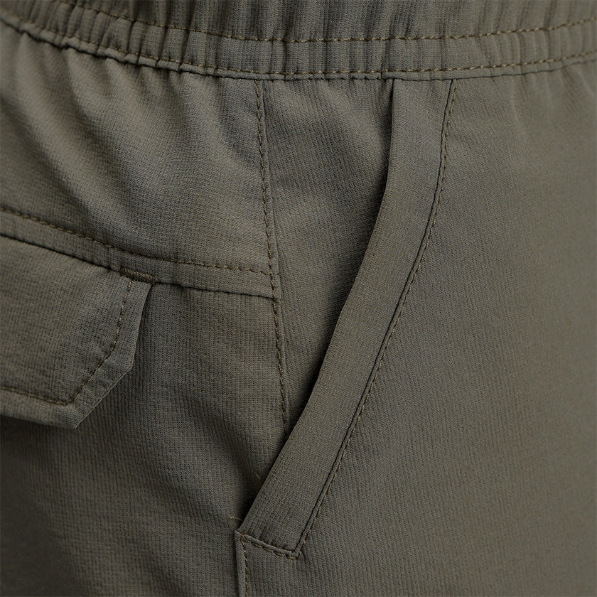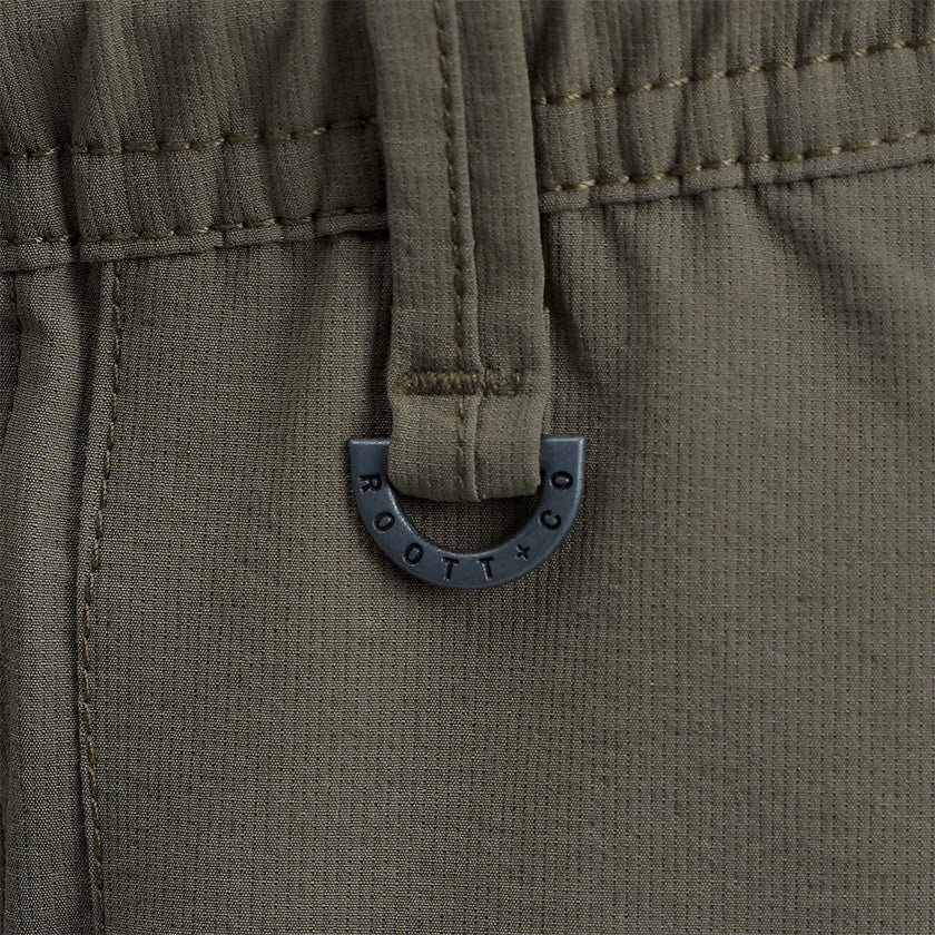 Bermuda cargo para hombre presenta bolsillos en los muslos y marquilla ROOTT+CO en el bolsillo trasero, cómoda ligeramente arriba de la rodilla.