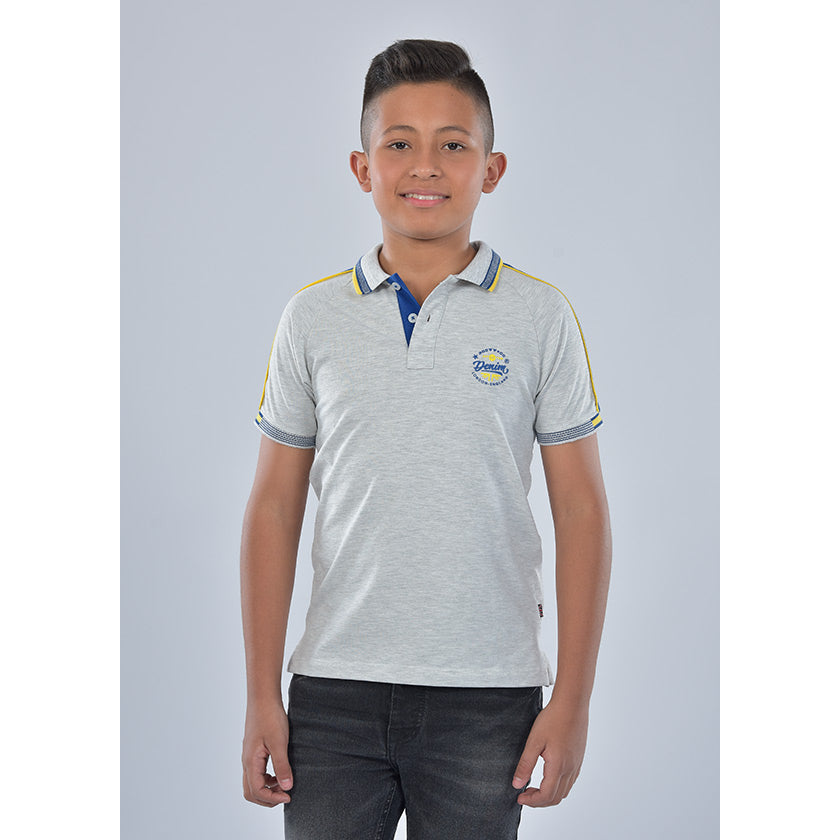 Polo para niño presenta un pequeño logo estampado, La foto de este producto es expuesta a diferentes focos de luz, el color presentado en la fotografía es una aproximación al color real.