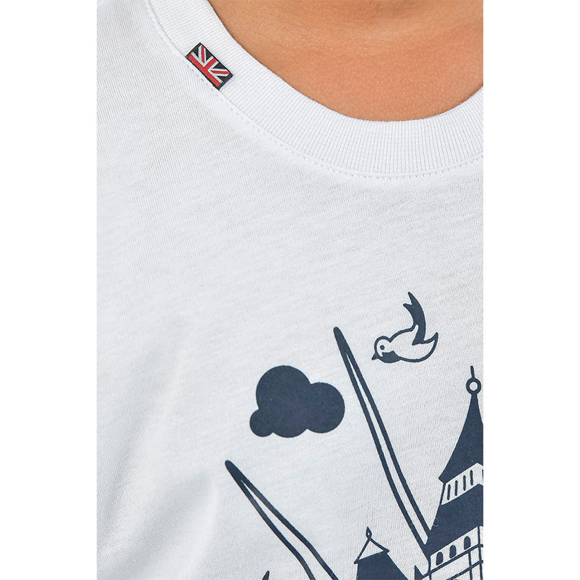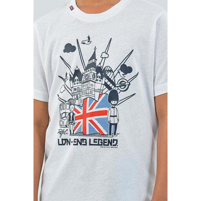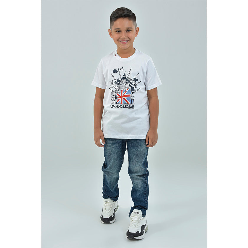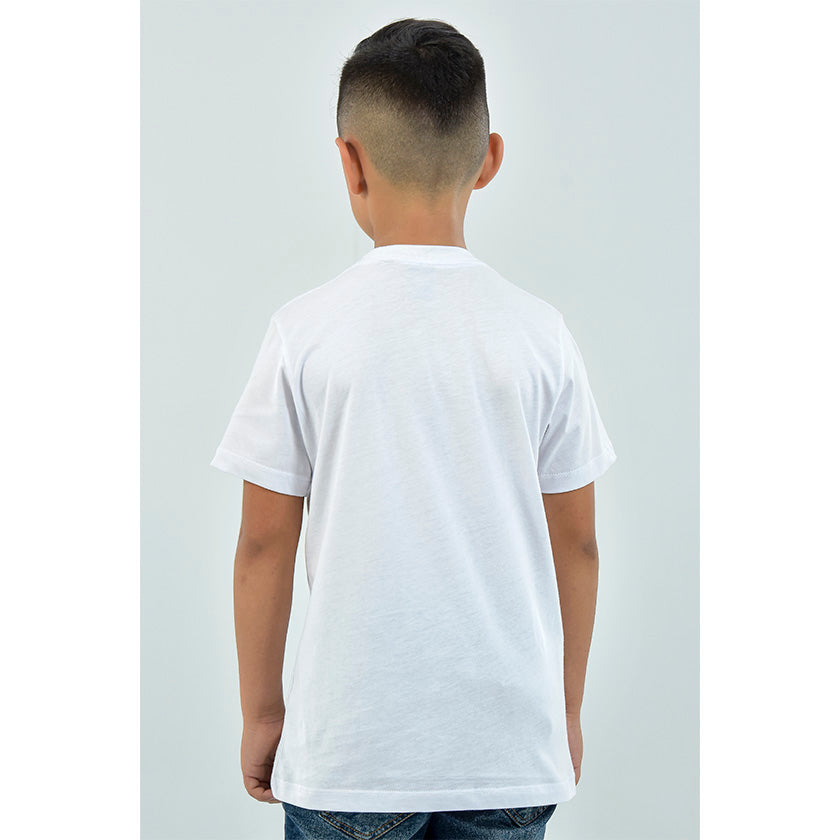 Camiseta niño luce bandera ROOTT+CO estampada en el pecho.