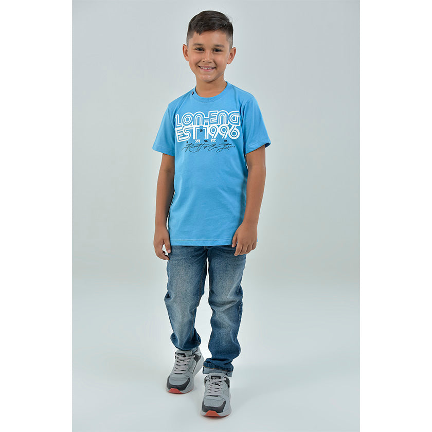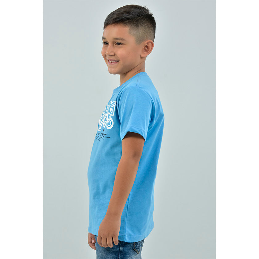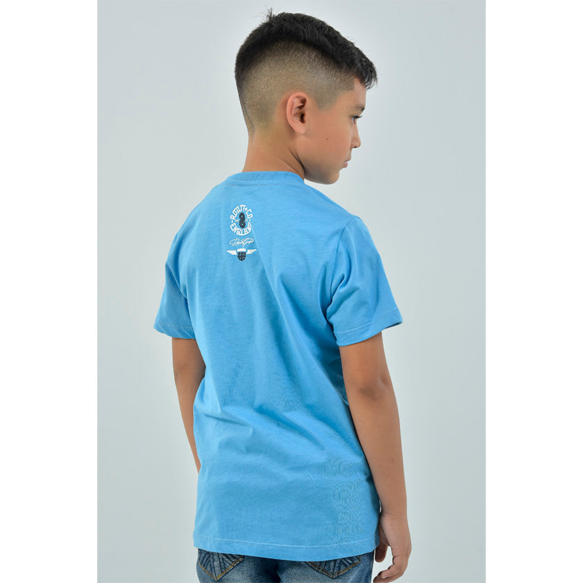 Camiseta niño luce bandera ROOTT+CO estampada en el pecho.