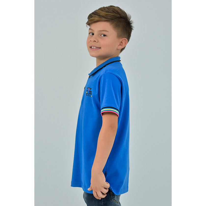 Polo para niño estampado presenta logo ROOTT+CO en el pecho. Los puños y el cuello en punto plano y acanalados le dan un toque elegante.