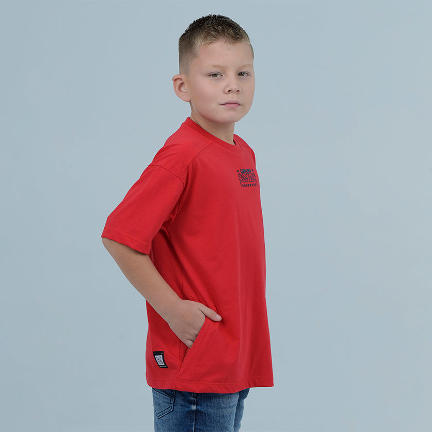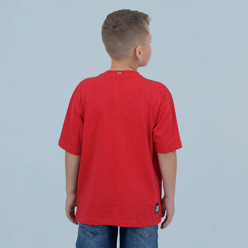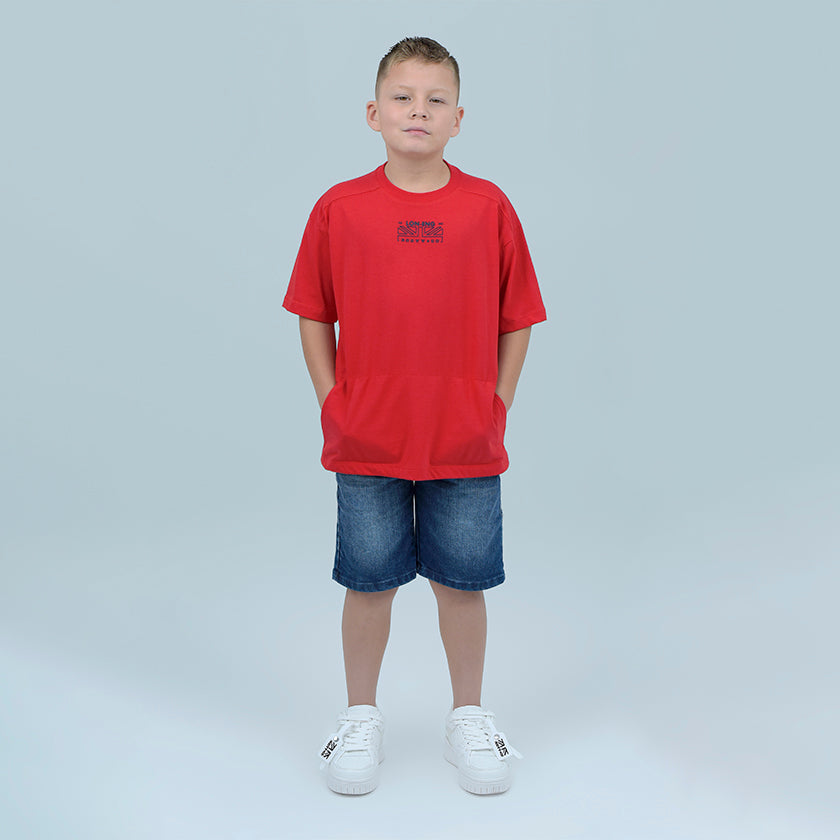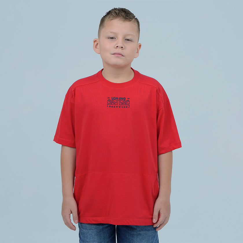 Camiseta Kids presenta logo Roott+co Jeans en el pecho, su cuello y puños tejidos rematan el diseño de la prenda.
