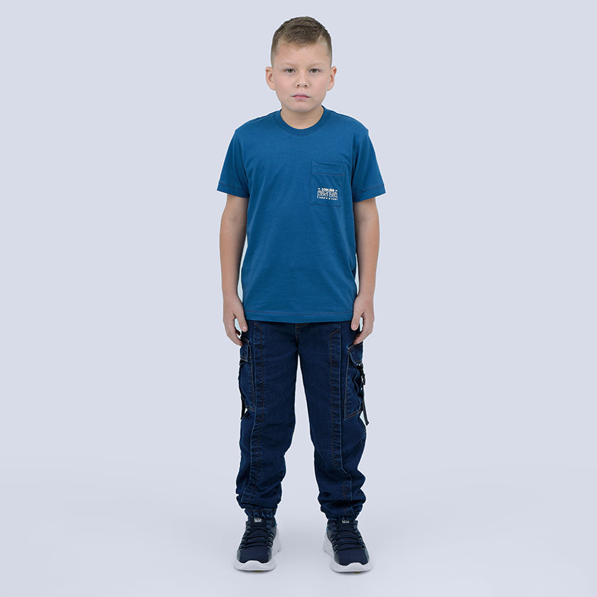 Camiseta Kids presenta full estampado, bolsillo en el pecho y marquilla bandera en el costado.