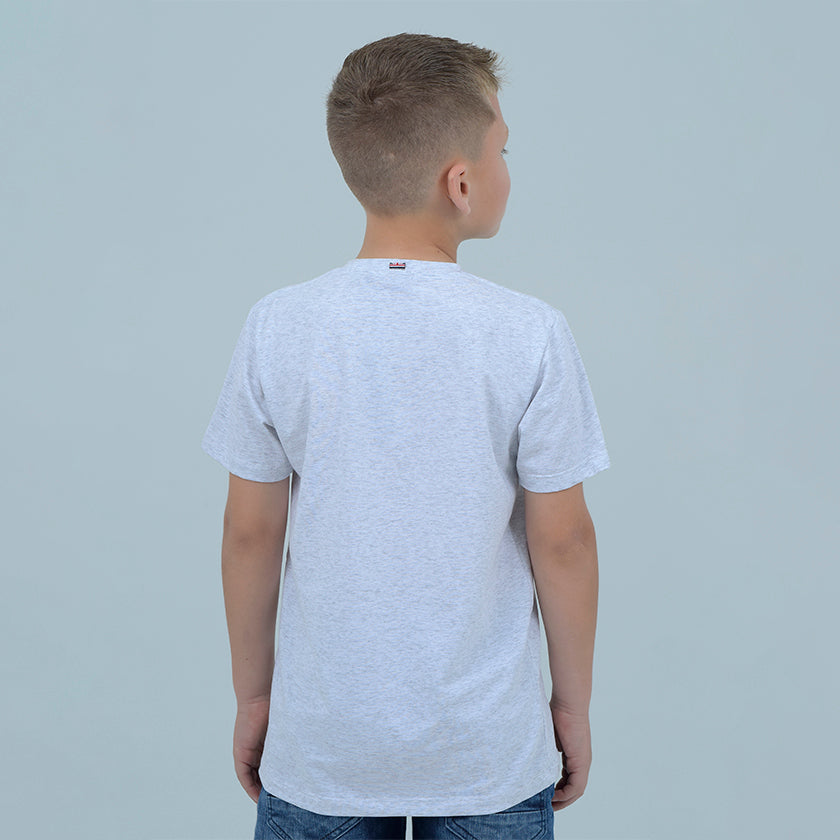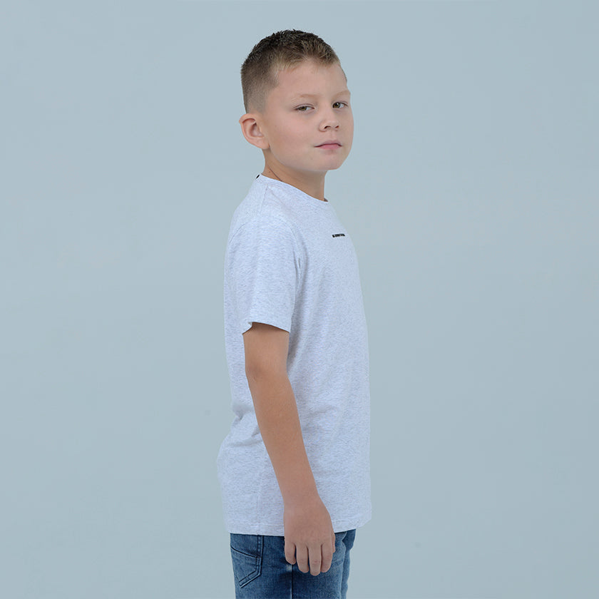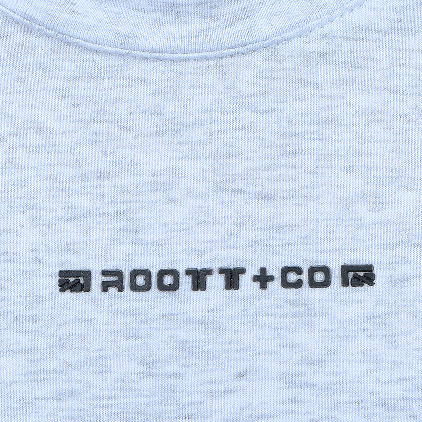 Camiseta Kids presenta logo Roott+co en el pecho, su cuello y puños tejidos rematan el diseño de la prenda.