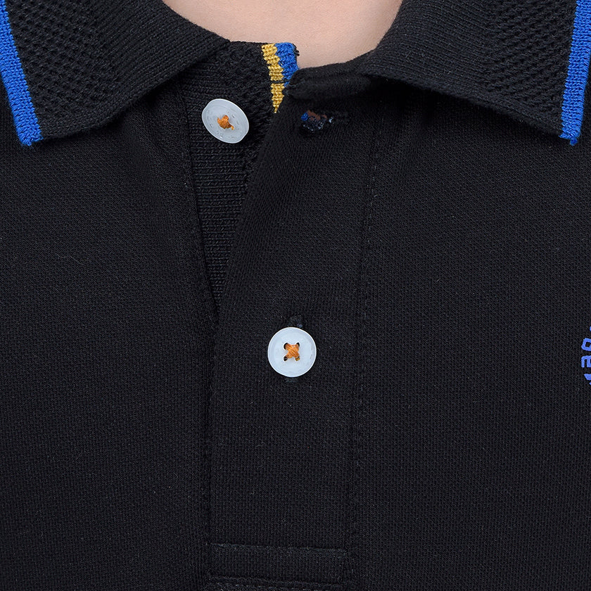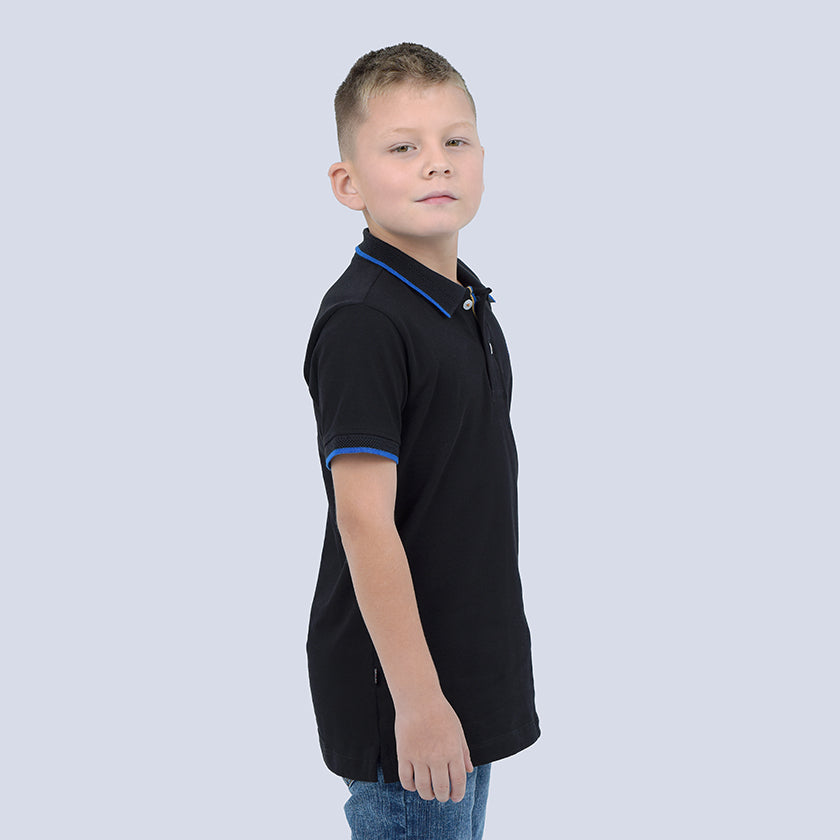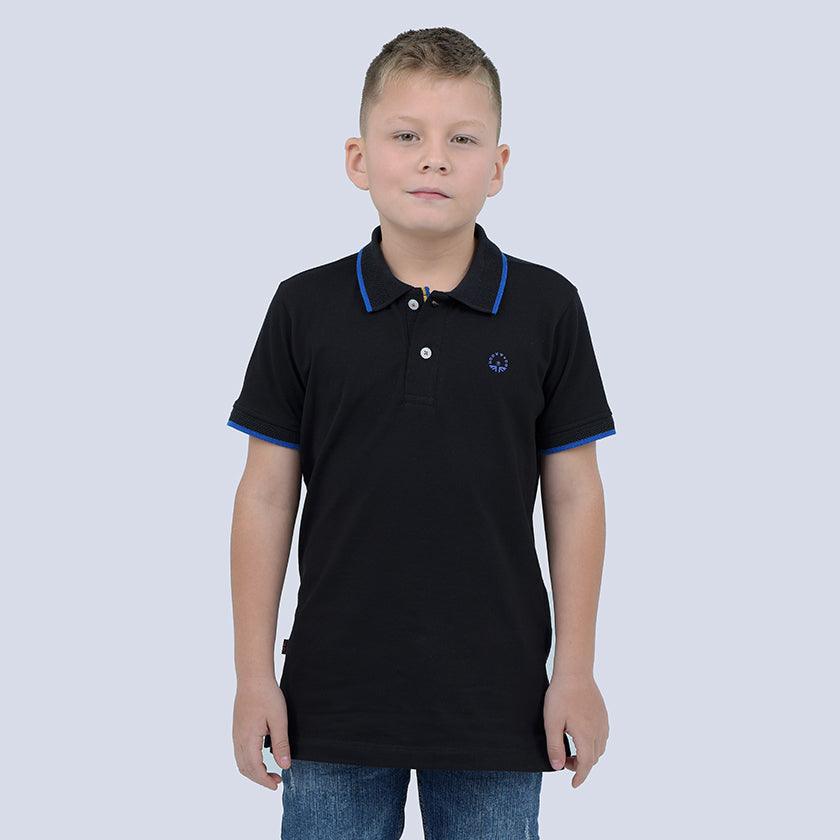 Polo para niño estampado presenta logo ROOTT+CO en el pecho. Los puños y el cuello en punto plano y acanalados le dan un toque elegante.