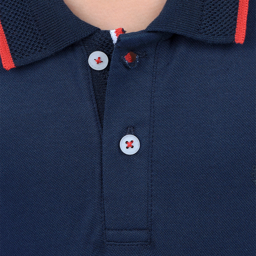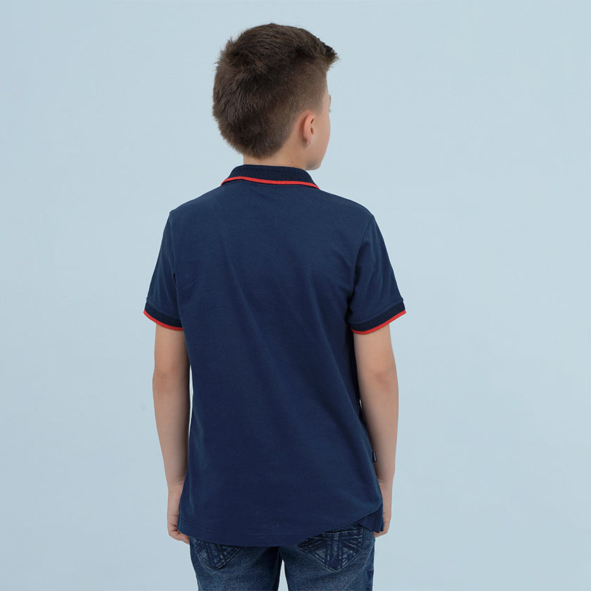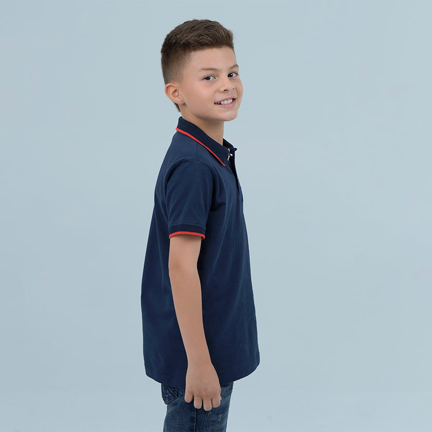 Polo para niño estampado presenta logo ROOTT+CO en el pecho. Los puños y el cuello en punto plano y acanalados le dan un toque elegante.