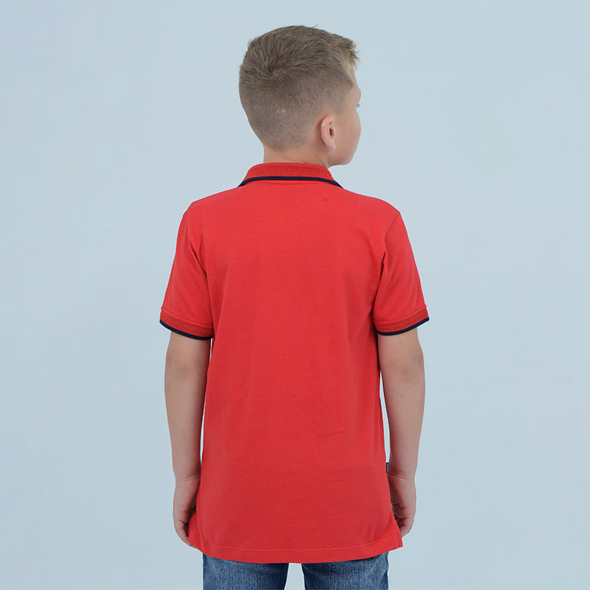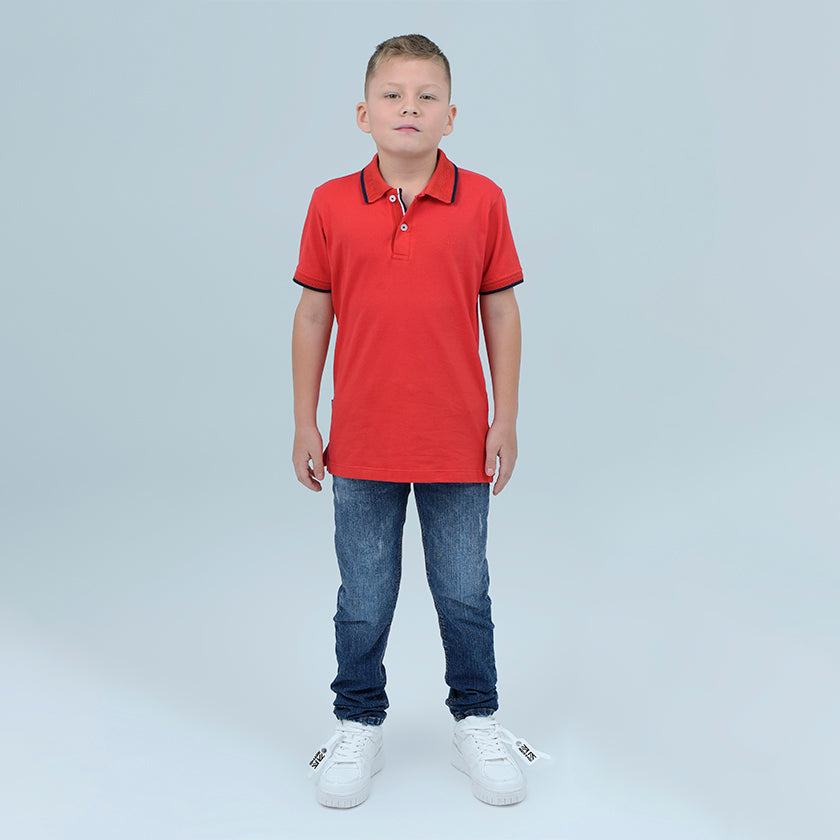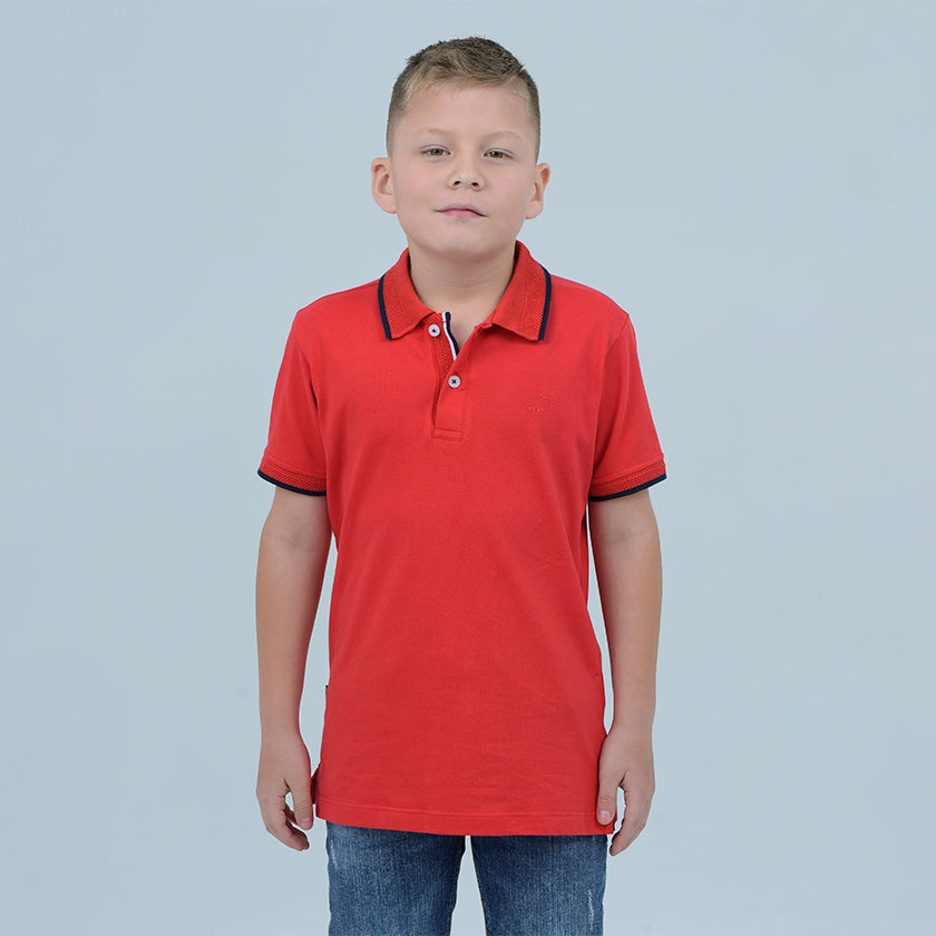 Polo para niño estampado presenta logo ROOTT+CO en el pecho. Los puños y el cuello en punto plano y acanalados le dan un toque elegante.