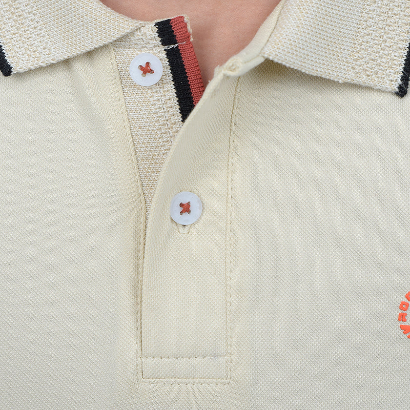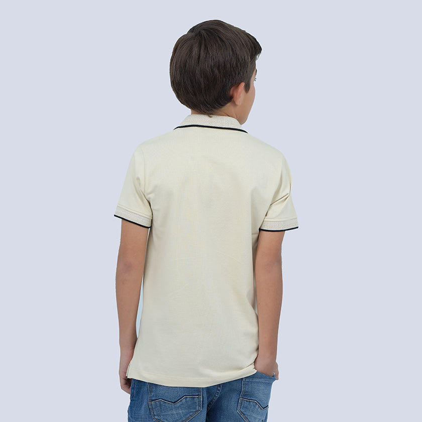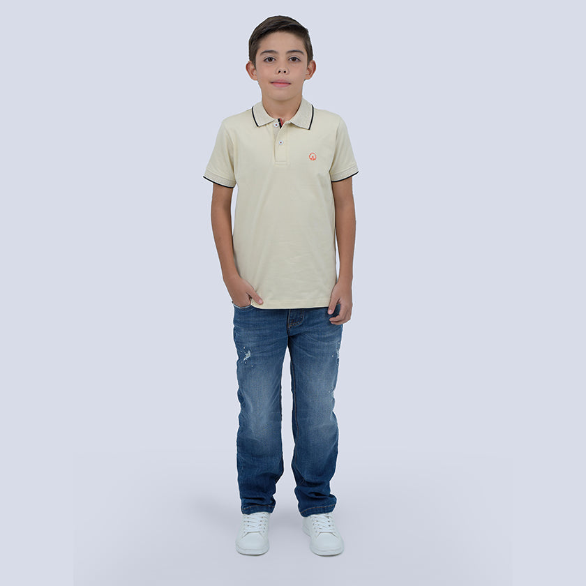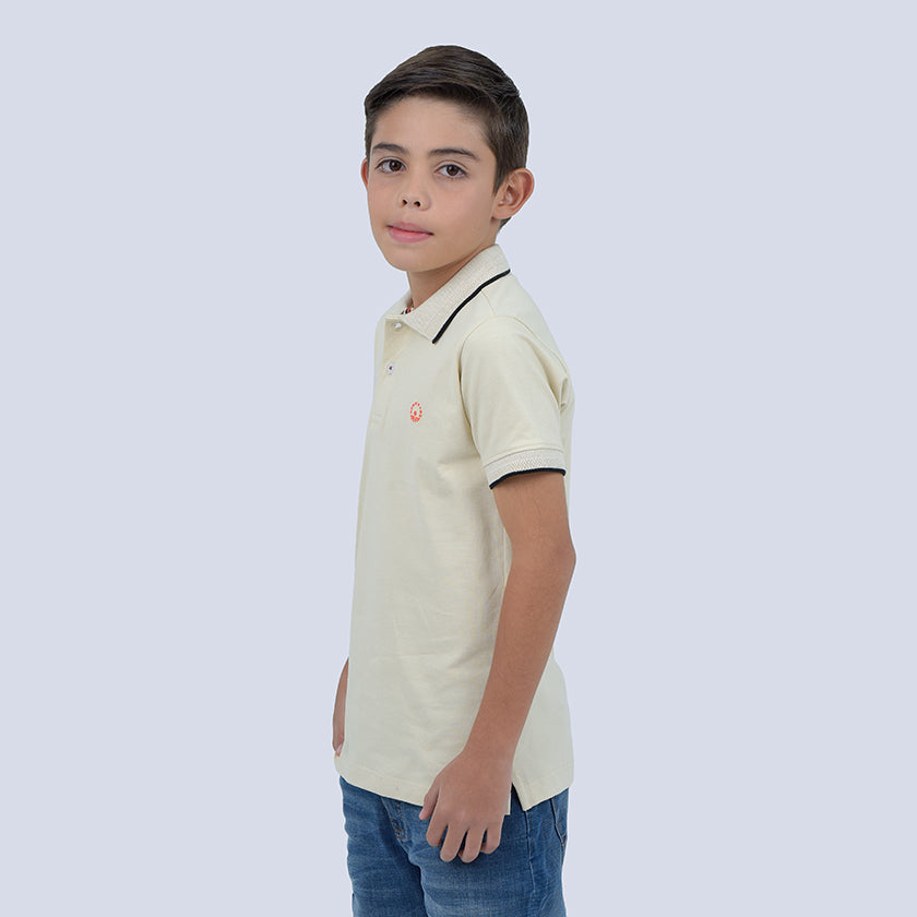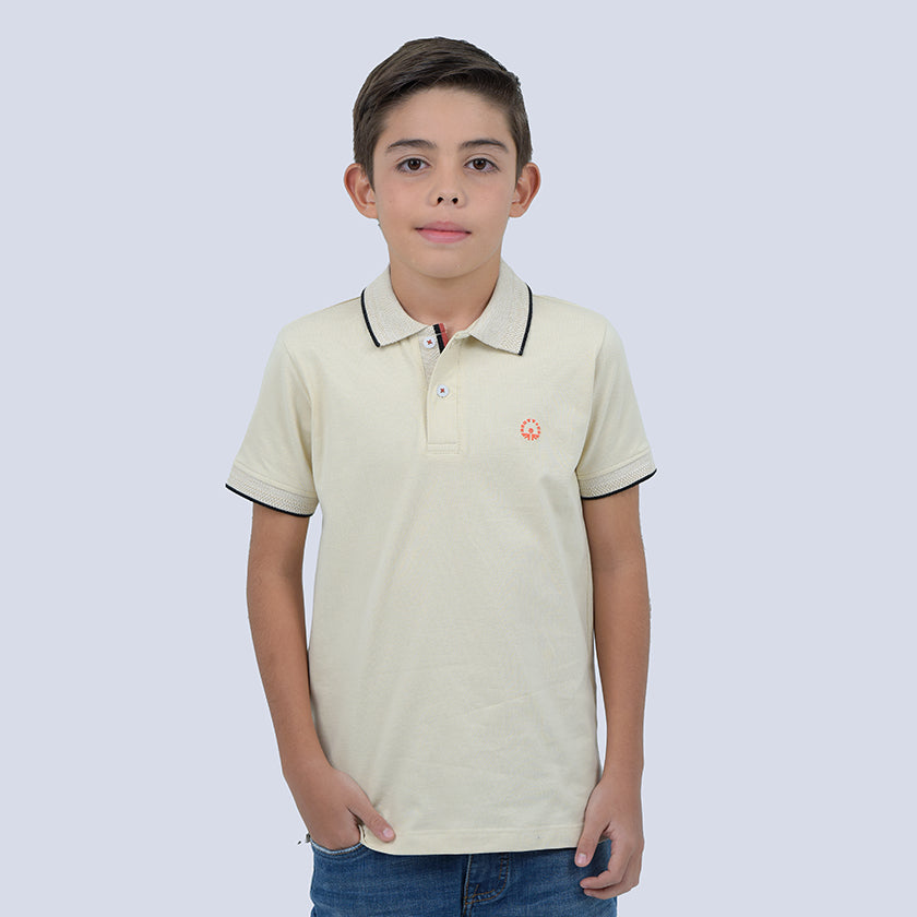 Polo para niño estampado presenta logo ROOTT+CO en el pecho. Los puños y el cuello en punto plano y acanalados le dan un toque elegante.