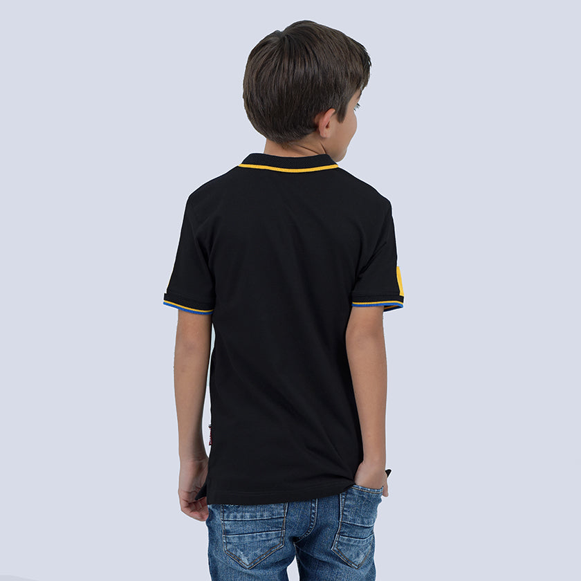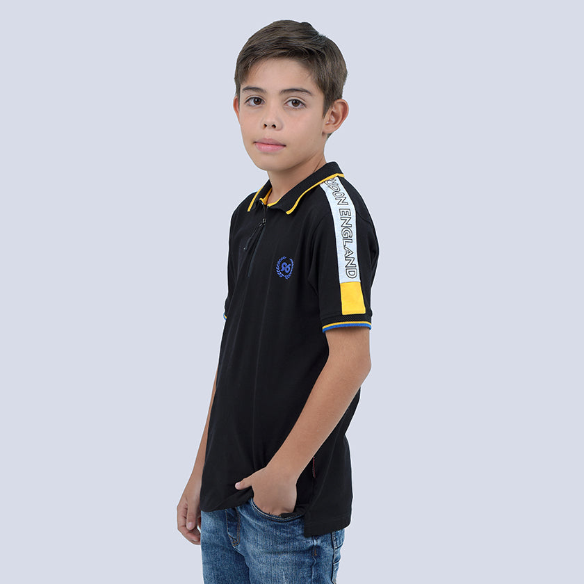 Polo para niño estampado presenta logo ROOTT+CO en el pecho. Los puños y el cuello en punto plano y acanalados le dan un toque elegante.