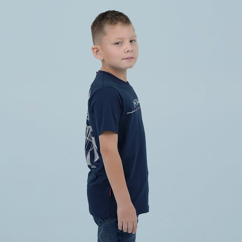 Camiseta Kids presenta logo Roott+co en el pecho y espalda, presenta marquilla bandera en el cuello posterior.