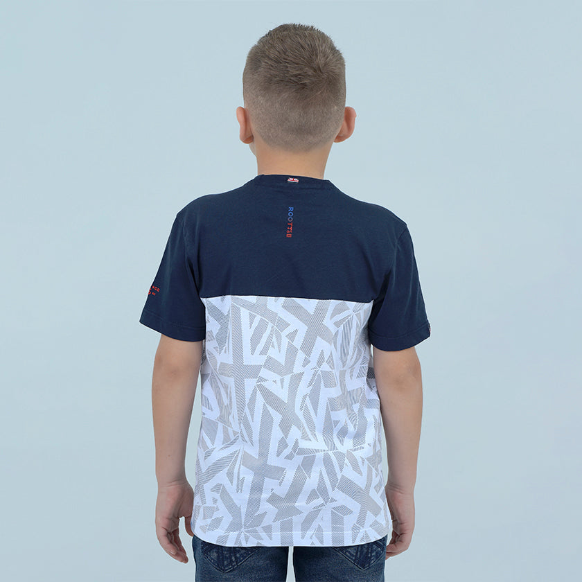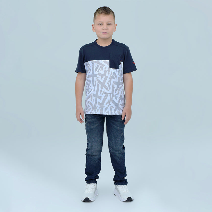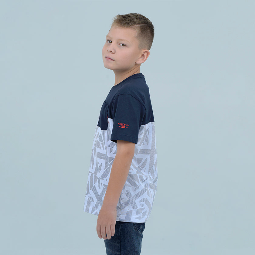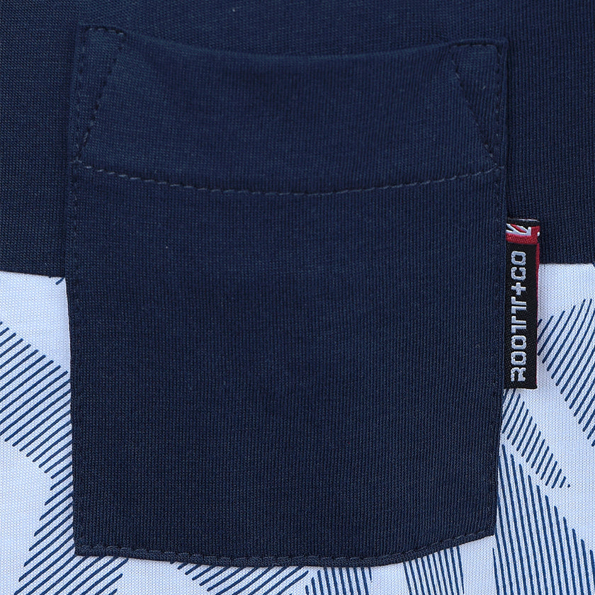 Camiseta Kids presenta gráfico Roott+co en el pecho, presenta bolsillo en el pecho, su corte superior en color contraste remata el diseño de la prenda.