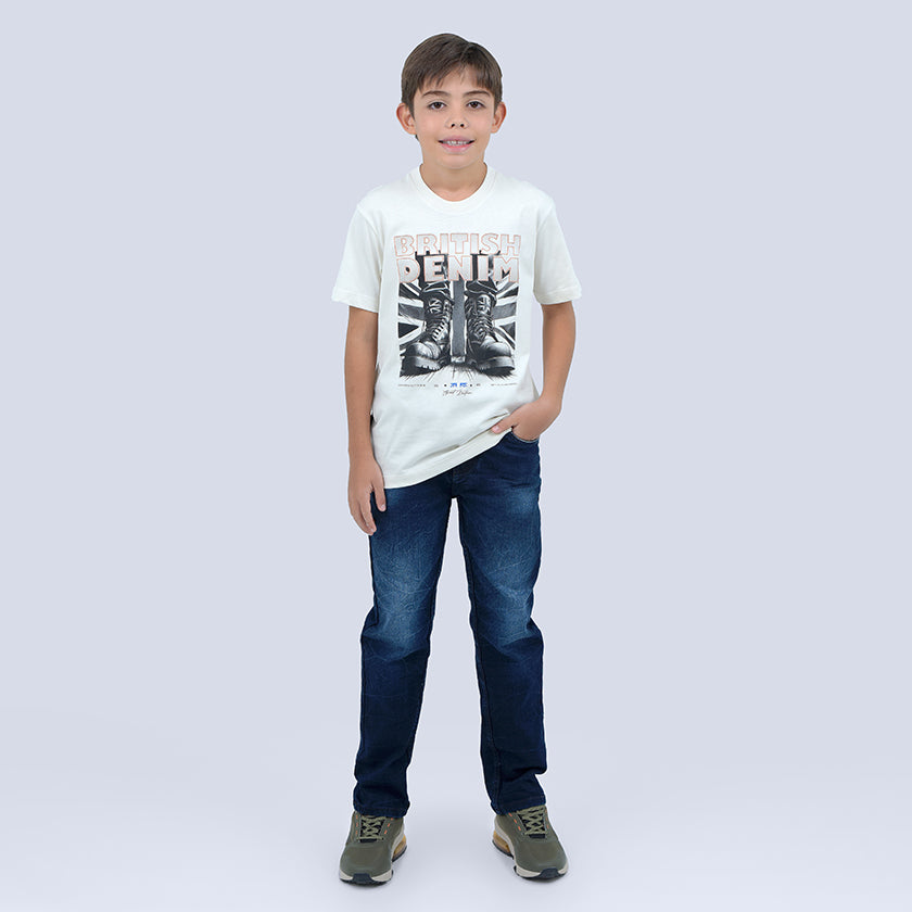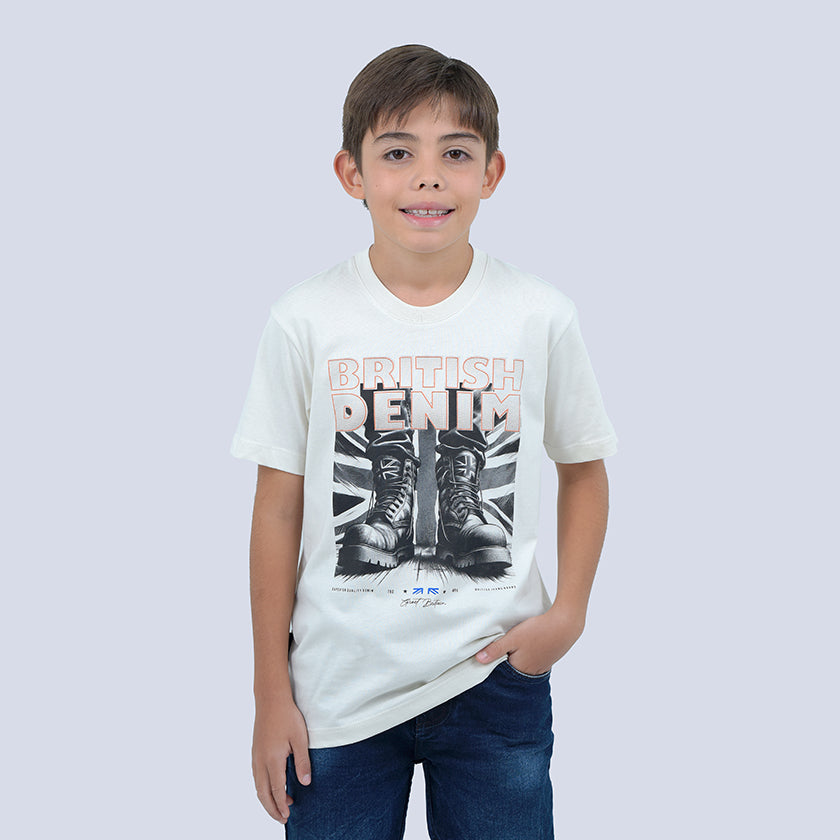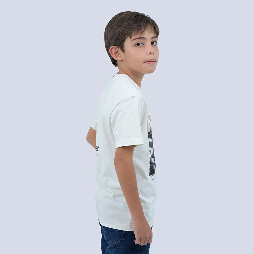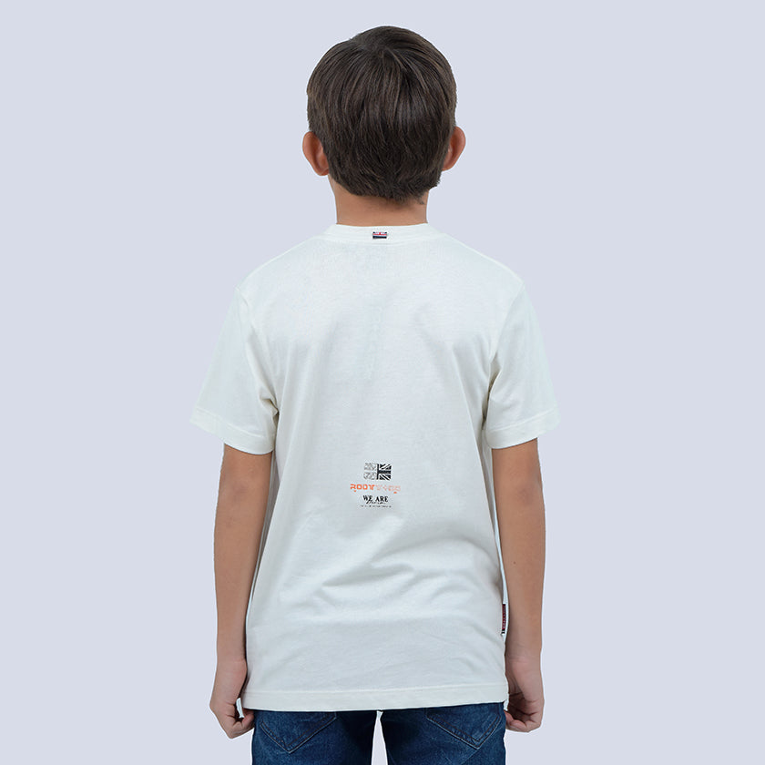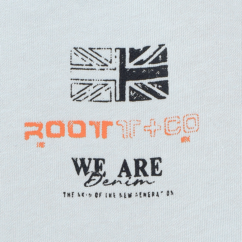 Camiseta niño luce bandera ROOTT+CO estampada en el pecho.