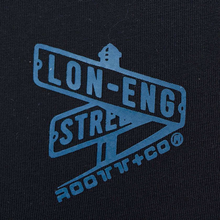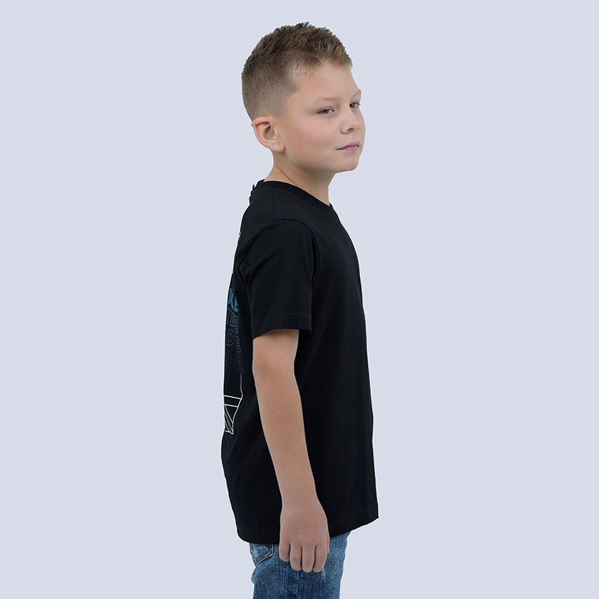 Camiseta Kids presenta gráfico Roott+co en el pecho, presenta marquilla bandera en el cuello posterior y gráfico en la espalda.
