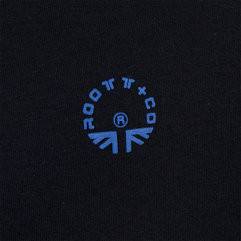 Camiseta Kids presenta logo Roott+co en el pecho, presenta marquilla bandera en el cuello posterior, sus cortes en los hombros y espalda rematan el diseño de la prenda.