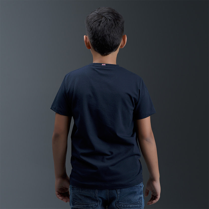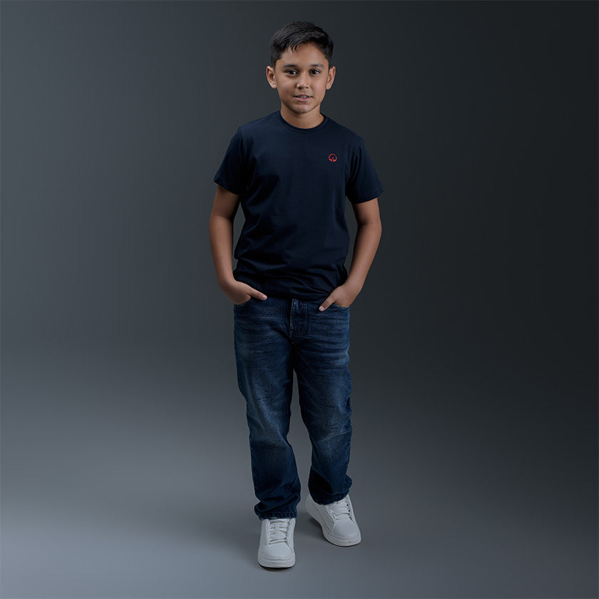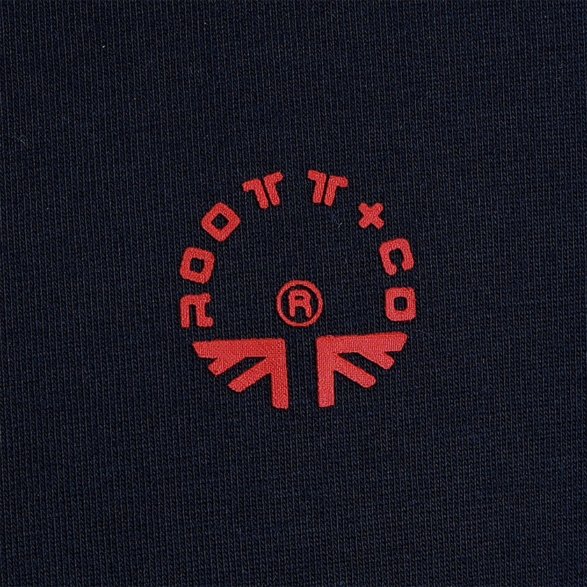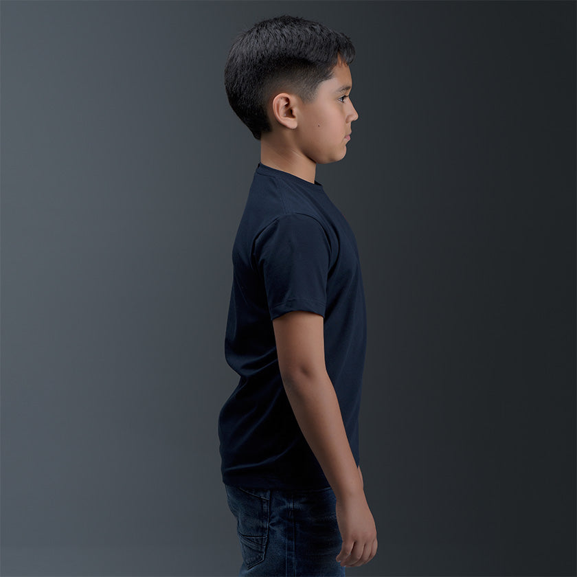 Camiseta Kids presenta logo Roott+co en el pecho, presenta marquilla bandera en el cuello posterior, sus cortes en los hombros y espalda rematan el diseño de la prenda.