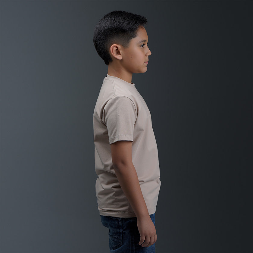 Camiseta Kids presenta logo Roott+co en el pecho, presenta marquilla bandera en el cuello posterior, sus cortes en los hombros y espalda rematan el diseño de la prenda.