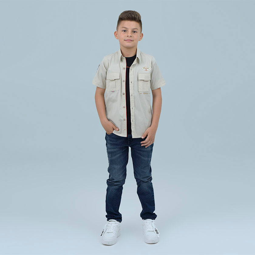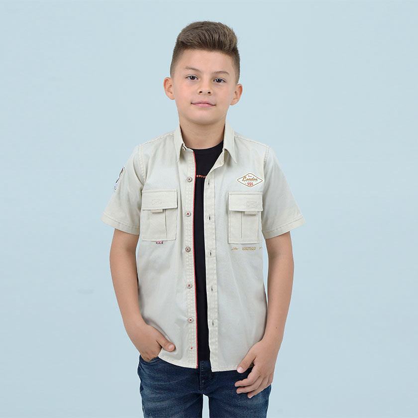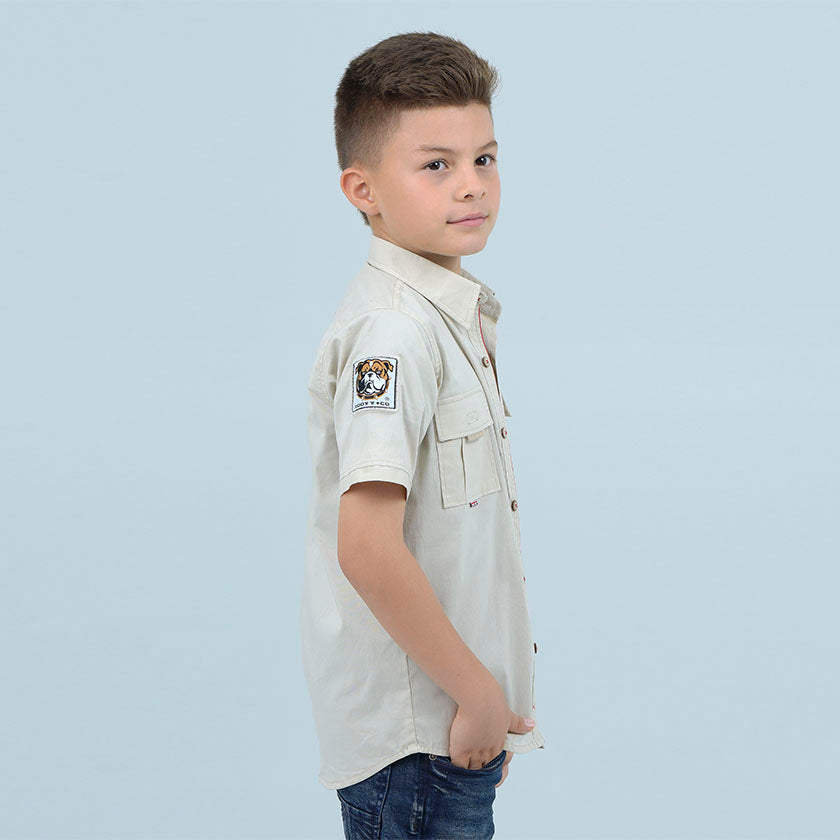 Camisa Kids de corte recto presenta bolsillo en el pecho.