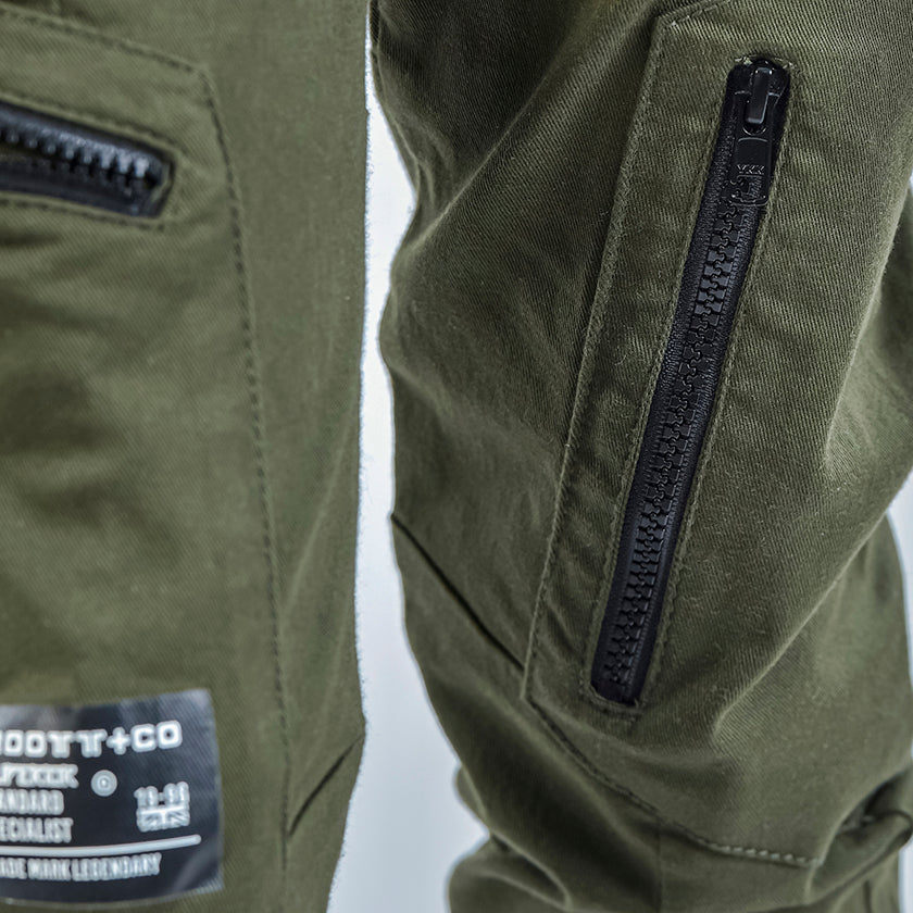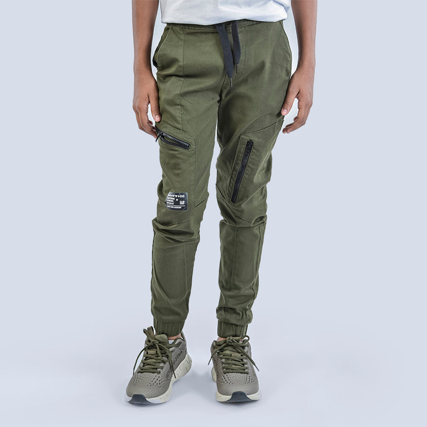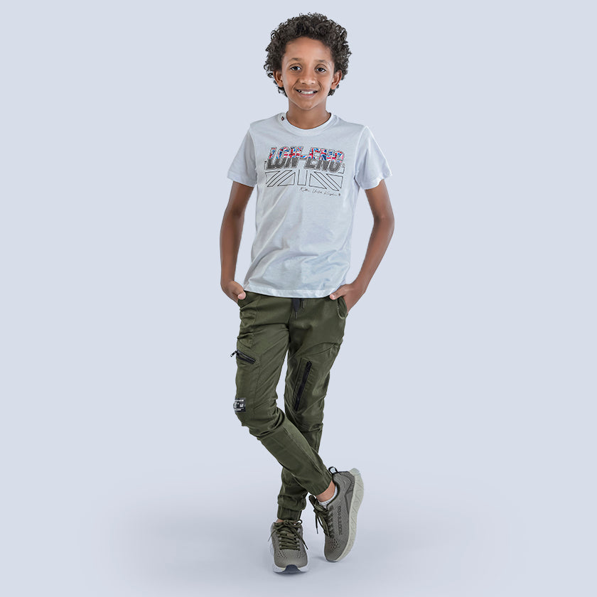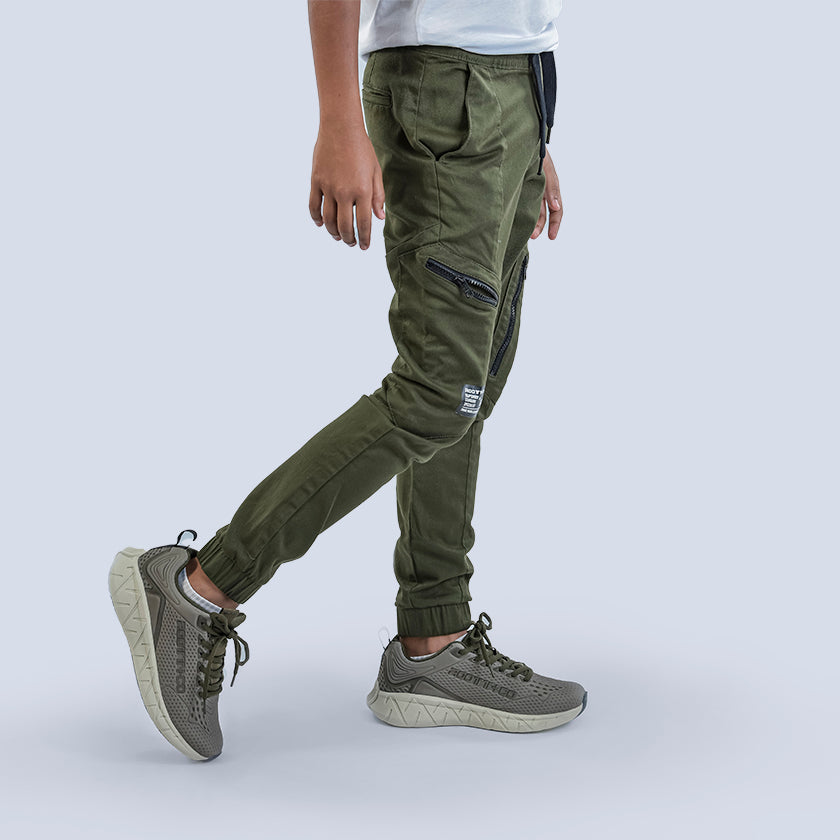 Pantalón cargo para niño. Lucen una silueta cómoda ajustada. Llevan los puños elásticos que se ajustan en los tobillos y cintura que viene rematada con un cordón ajustable, presenta bolsillo posterior y marquilla ROOTT+CO.
