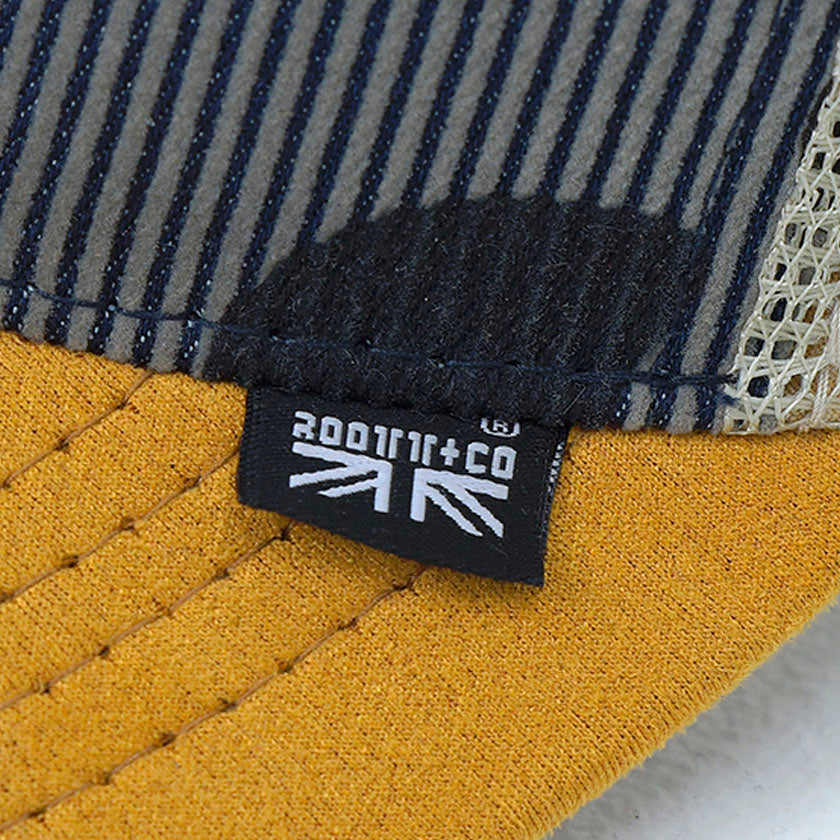 Gorra para niño presenta pieza de diseño en la corona. Luce sello de calidad ROOTT+CO y marquilla bandera detrás. Su malla trasera le da un toque sofisticado y fresco.