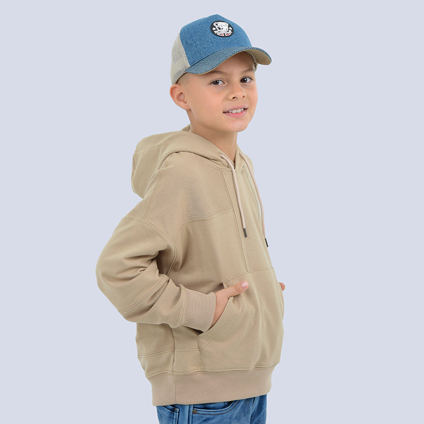 Hoodie para niño. Presenta sello ROOTT+CO y cordones y bolsillo de ribete ancho delantero. Luce marquilla bandera y de código. Prenda con bajo y puños tejidos.