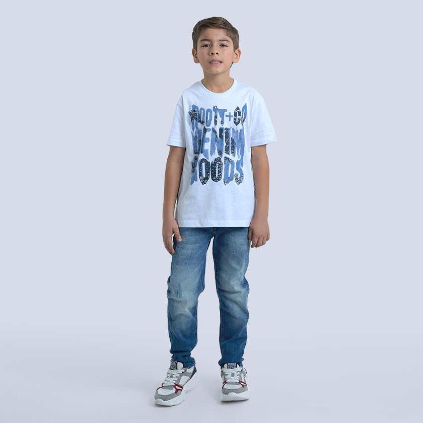 Jeans para niño. Presentan silueta de corte recto en la pierna y bota, luce marquilla de la marca en la parte posterior, las líneas pespunteadas y redondeadas de los bolsillos están reforzadas.