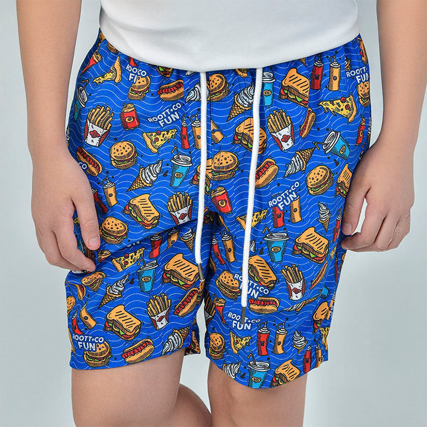 Pantaloneta playera para niño. Presenta el sello ROOTT+CO y la marca bandera en el bolsillo posterior, cómodo ligeramente arriba de la rodilla, luce cordones ajustables.