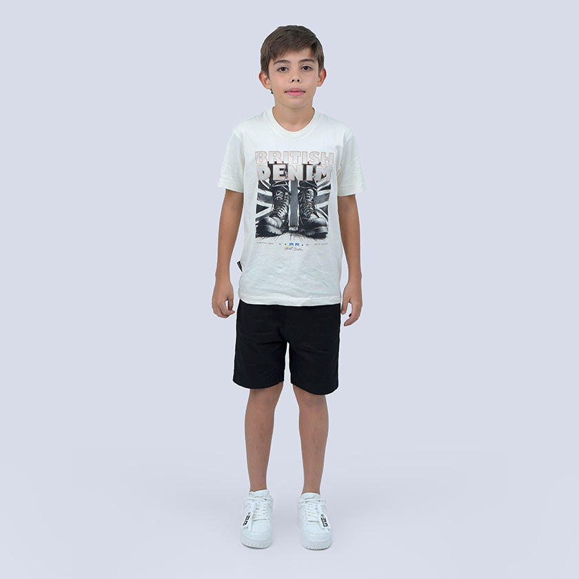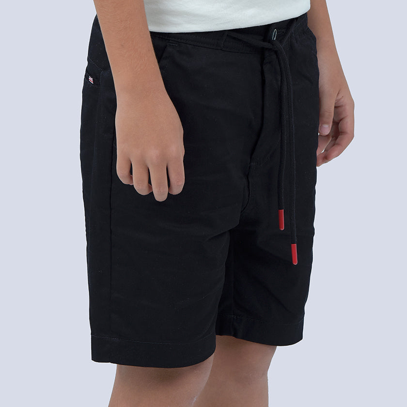 Pantaloneta para niño cómoda ligeramente arriba de la rodilla. Luce bolsillo trasero y marquilla ROOTT+CO.