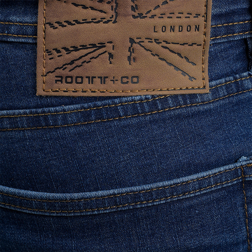 Los Jeans Skinny Liverpool son una prenda de corte cómodo ajustado de arriba abajo, luce bolsillo para monedas con marquilla ROOTT+CO, líneas pespunteadas y redondeadas de los bolsillos están reforzadas.