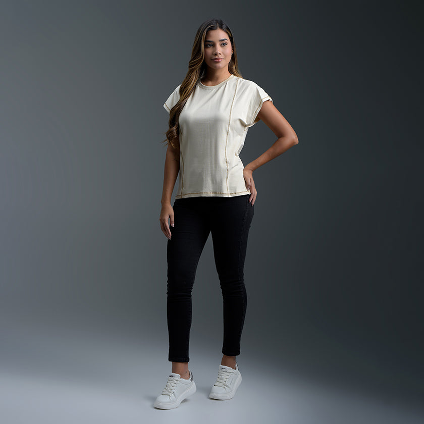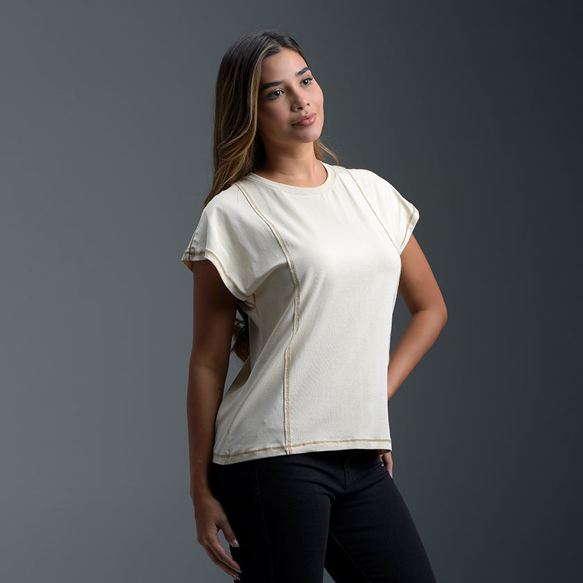 Blusa ROOTT+CO adopta un look minimalista. Diseñada para la comodidad y el estilo, esta pieza esencial presenta un corte recto y mangas anchas que ofrecen un toque fresco y clásico, presenta una doble costura en color blanco en la parte exterior de la prenda.