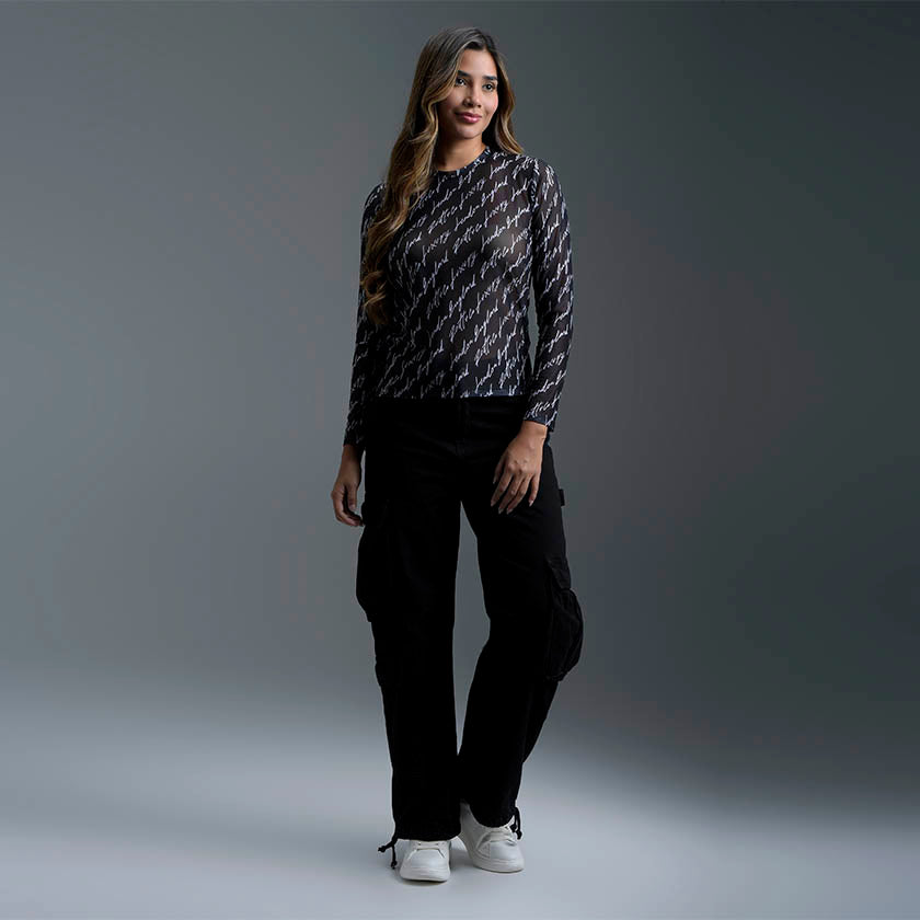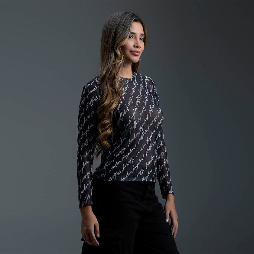Blusa manga larga ROOTT+CO enmallada diseñada para la comodidad y el estilo, esta pieza esencial presenta un corte recto y mangas largas que ofrecen un toque moderno y relajado. El escote redondeado añade un elemento clásico y su corte en la espalda remata el diseño de la prenda.