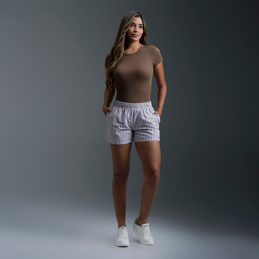Body azul de estilo casual con diseño tipo buzo y tejido acanalado que se ajusta suavemente al cuerpo. Confeccionado en material elástico y cómodo, ofrece un look moderno y favorecedor. Presenta cuello redondo y mangas cortas, perfecto para combinar con jeans o faldas y crear outfits versátiles para cualquier ocasión