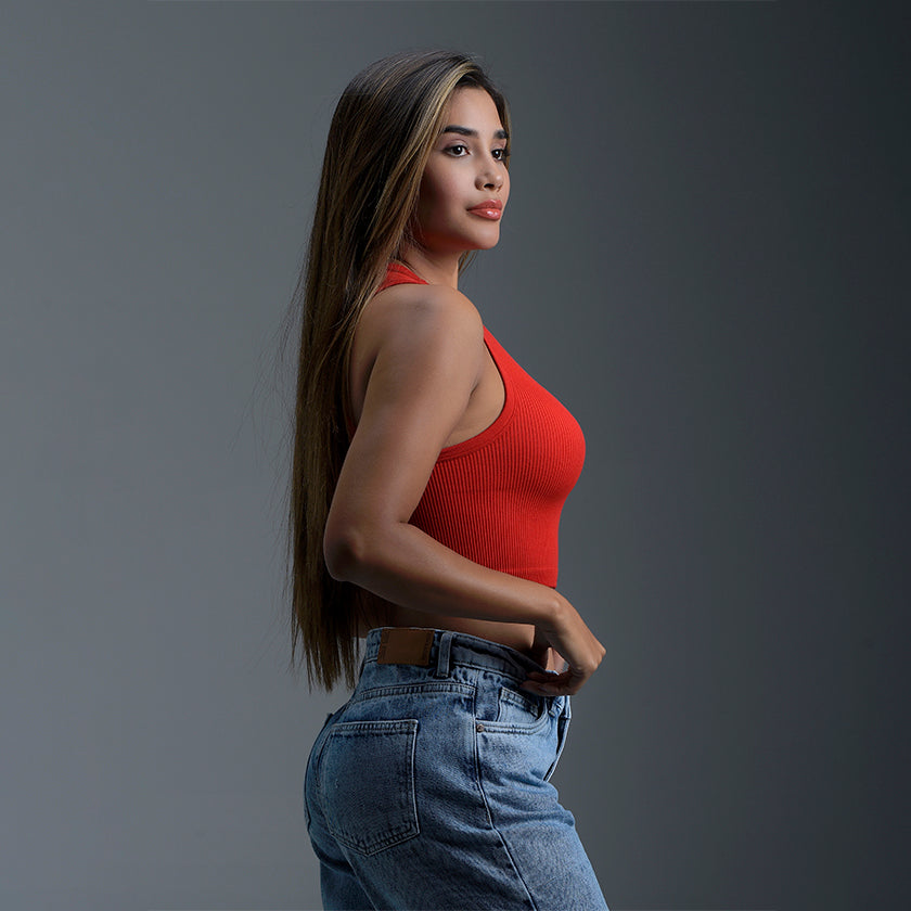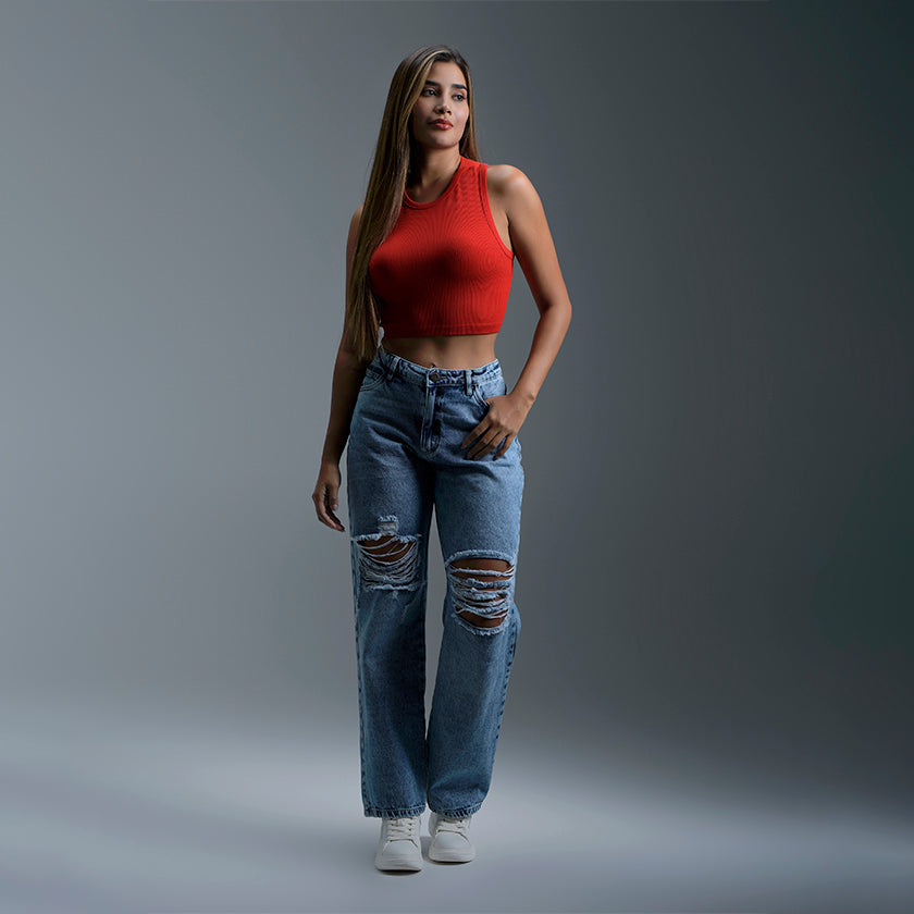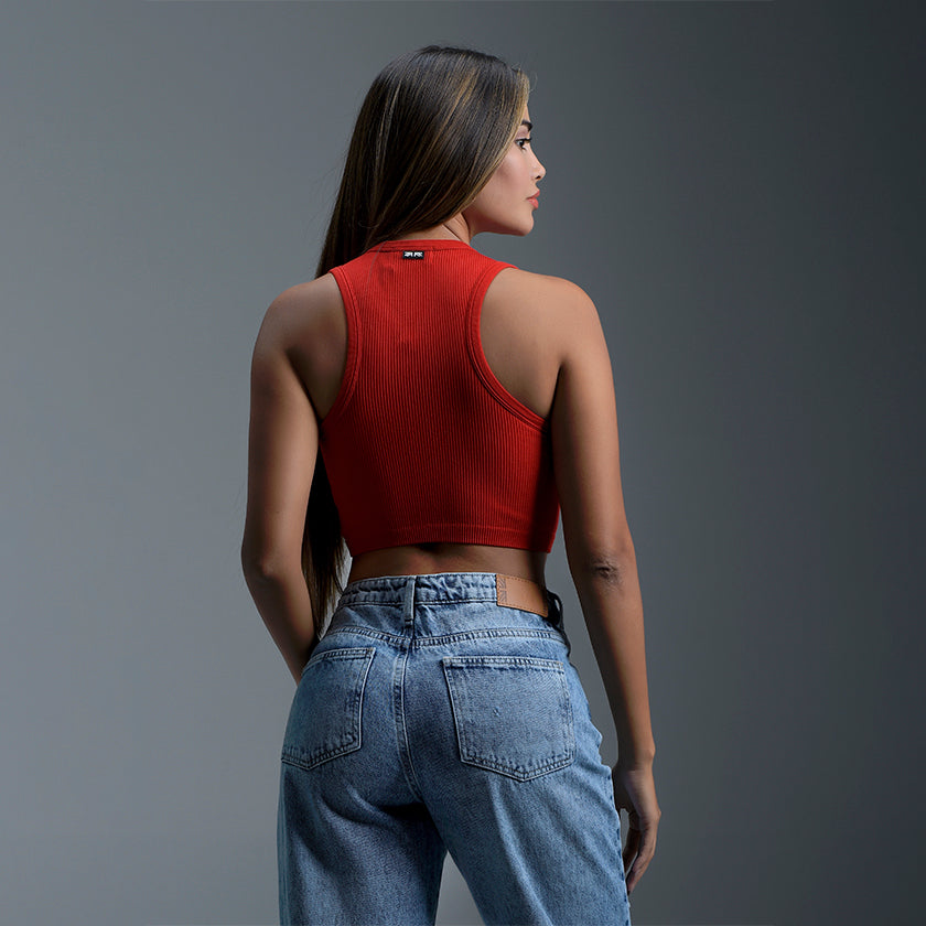 Adopta un look minimalista y chic con esta blusa crop top sin mangas. Diseñada para la comodidad y el estilo, esta pieza esencial presenta un corte ajustado y luce un toque moderno y versátil. El escote redondo simple en la parte delantera y el escote en espalda redondeado rematan el diseño de la prenda, ofreciendo una silueta limpia y contemporánea.