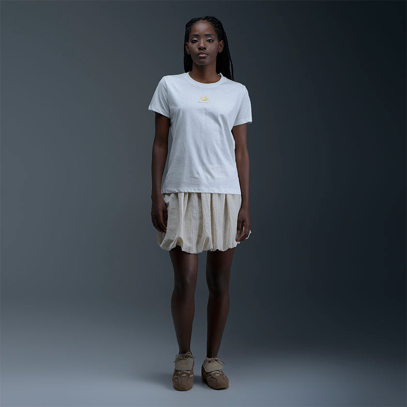 Esta falda corta para mujer de ROOTT+CO presenta un diseño coqueto con gran movimiento y textura.