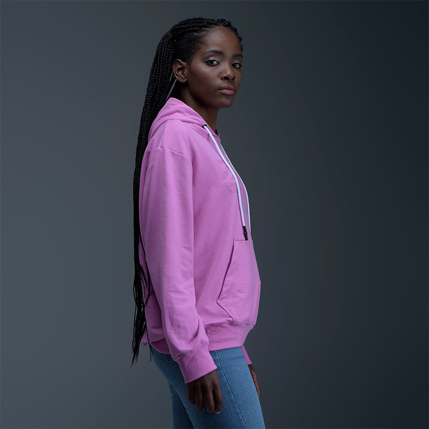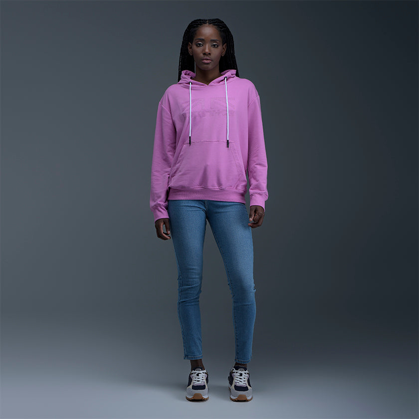 Hoodie para Mujer. Presenta diseño gráfico en la parte inferior. Prenda con puños tejidos.