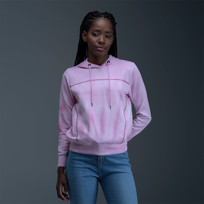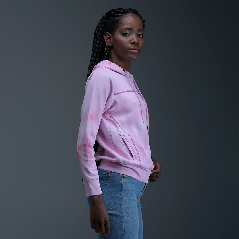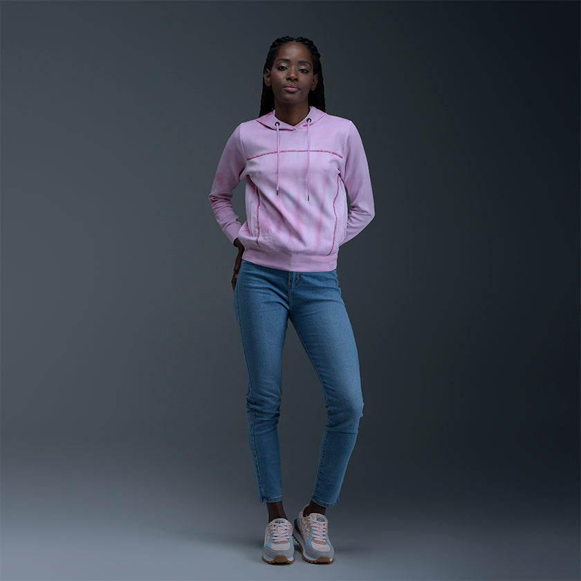 Hoodie para Mujer. Presenta diseño gráfico en la parte inferior. Prenda con puños tejidos.