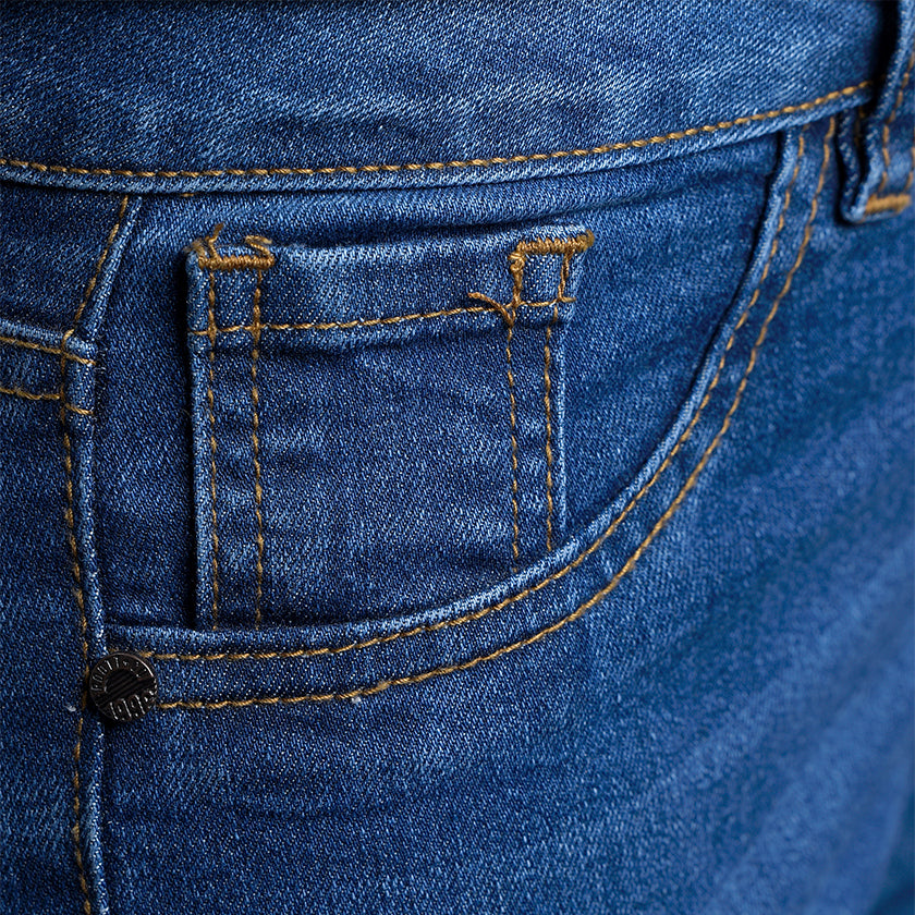 • Tejido denim con estiramiento suave
