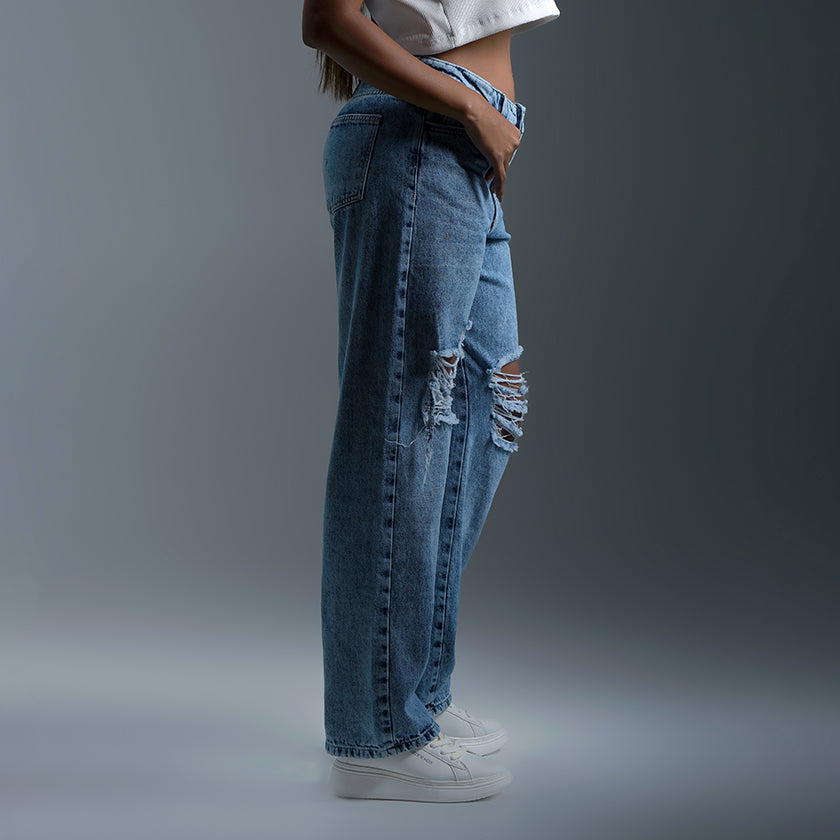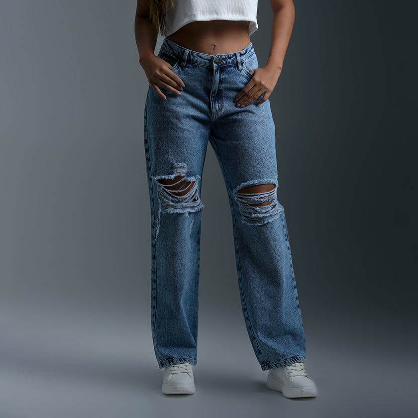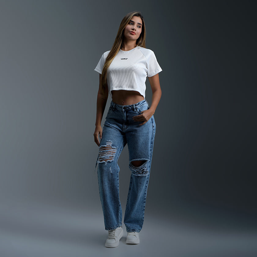 Este jean combina estilo moderno y comodidad gracias a su silueta de pierna ancha desde la cadera hasta la bota. Su diseño versátil se adapta a diferentes ocasiones, desde looks casuales hasta outfits más urbanos. Las costuras reforzadas en bolsillos y pretina ofrecen mayor durabilidad, mientras que su confección en denim suave proporciona libertad de movimiento y un ajuste cómodo que realza la figura.