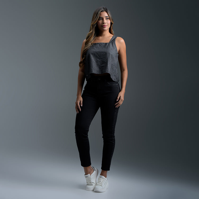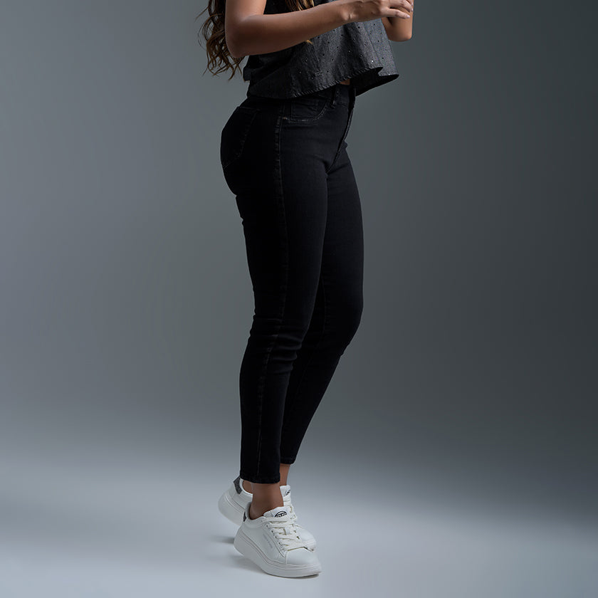 Descubre la fusión ideal entre comodidad y estilo con nuestra colección de jeans skinny de tiro alto. Diseñados para realzar tu silueta con un ajuste ceñido desde la cintura hasta los tobillos, estos jeans se adaptan perfectamente a tu cuerpo gracias a su tejido con toque elástico que brinda libertad de movimiento sin perder estructura.