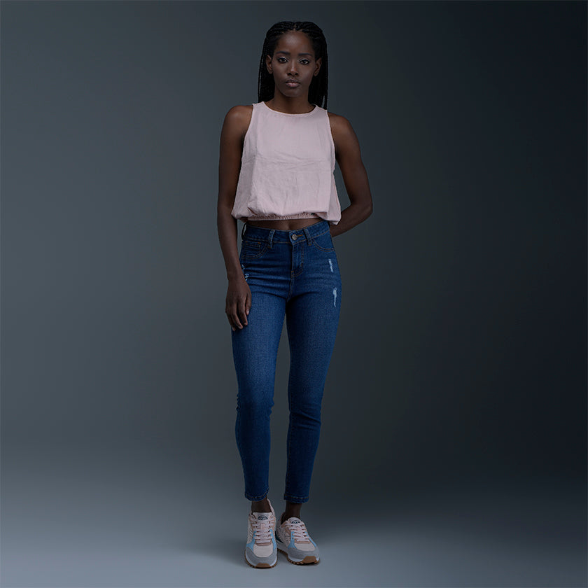 Descubre la fusión ideal entre comodidad y estilo con nuestra colección de jeans skinny de tiro alto. Diseñados para realzar tu silueta con un ajuste ceñido desde la cintura hasta los tobillos, estos jeans se adaptan perfectamente a tu cuerpo gracias a su tejido con toque elástico que brinda libertad de movimiento sin perder estructura.