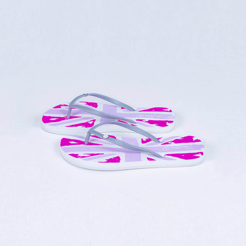 Sandalias para mujer presenta sellos ROOTT+CO en las tiras y gráfico relieve junto con logo en la suela, ligeras y cómodas de textura agradable en el pie.