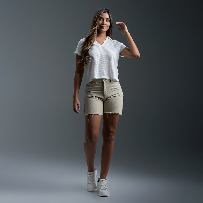 Short denim para mujer. Cuenta con marquilla de la marca en la parte posterior. Tiro alto y silueta cómoda ajustada al cuerpo para crear un outfit más fresco.