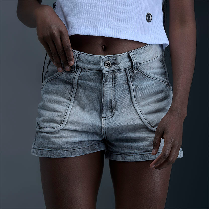 Short denim para mujer. Cuenta con marquilla de la marca en la parte posterior. Tiro alto y silueta cómoda ajustada al cuerpo para crear un outfit más fresco.